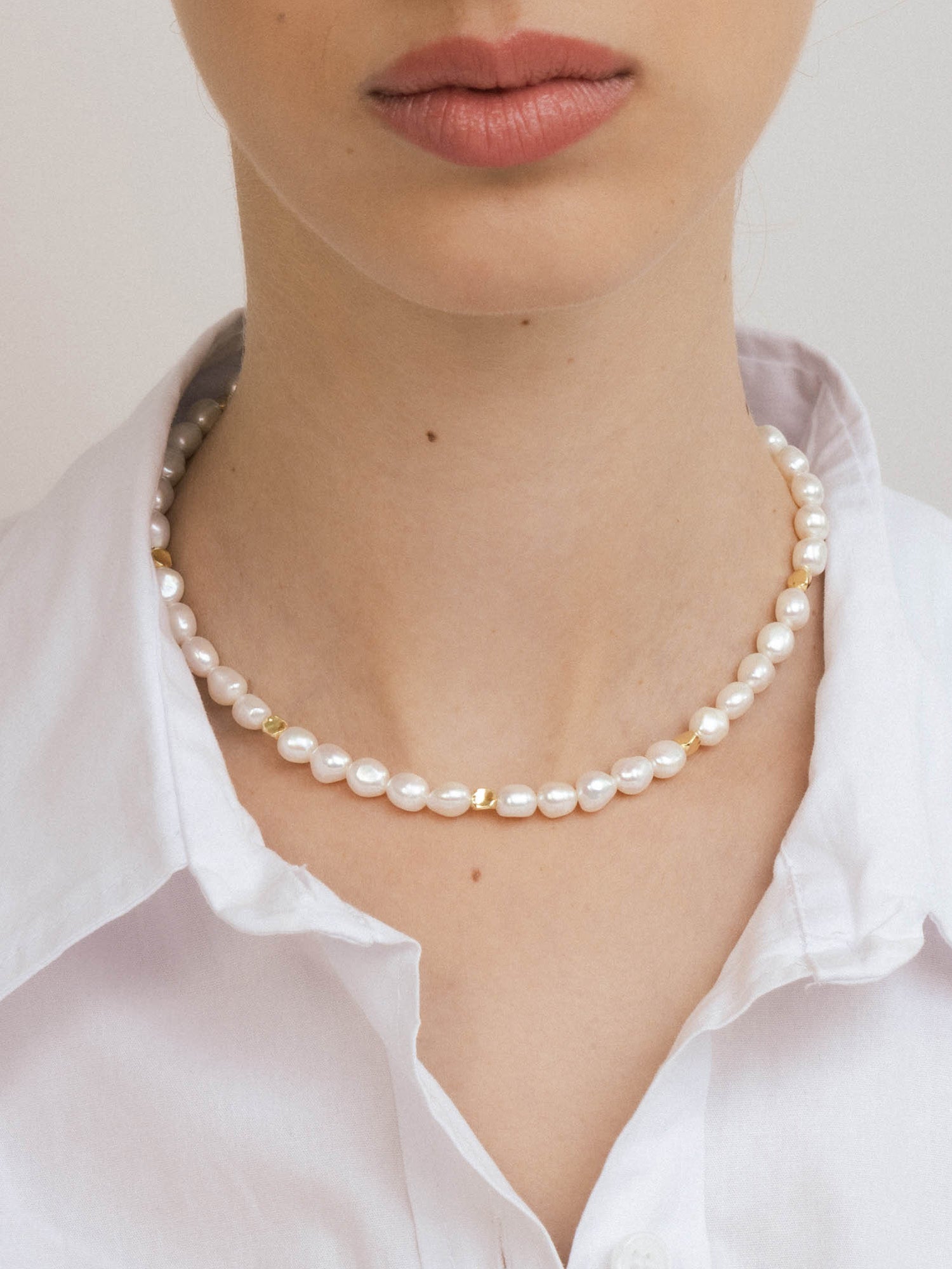 Collar gargantilla, Bañado en oro, Perla cultivada