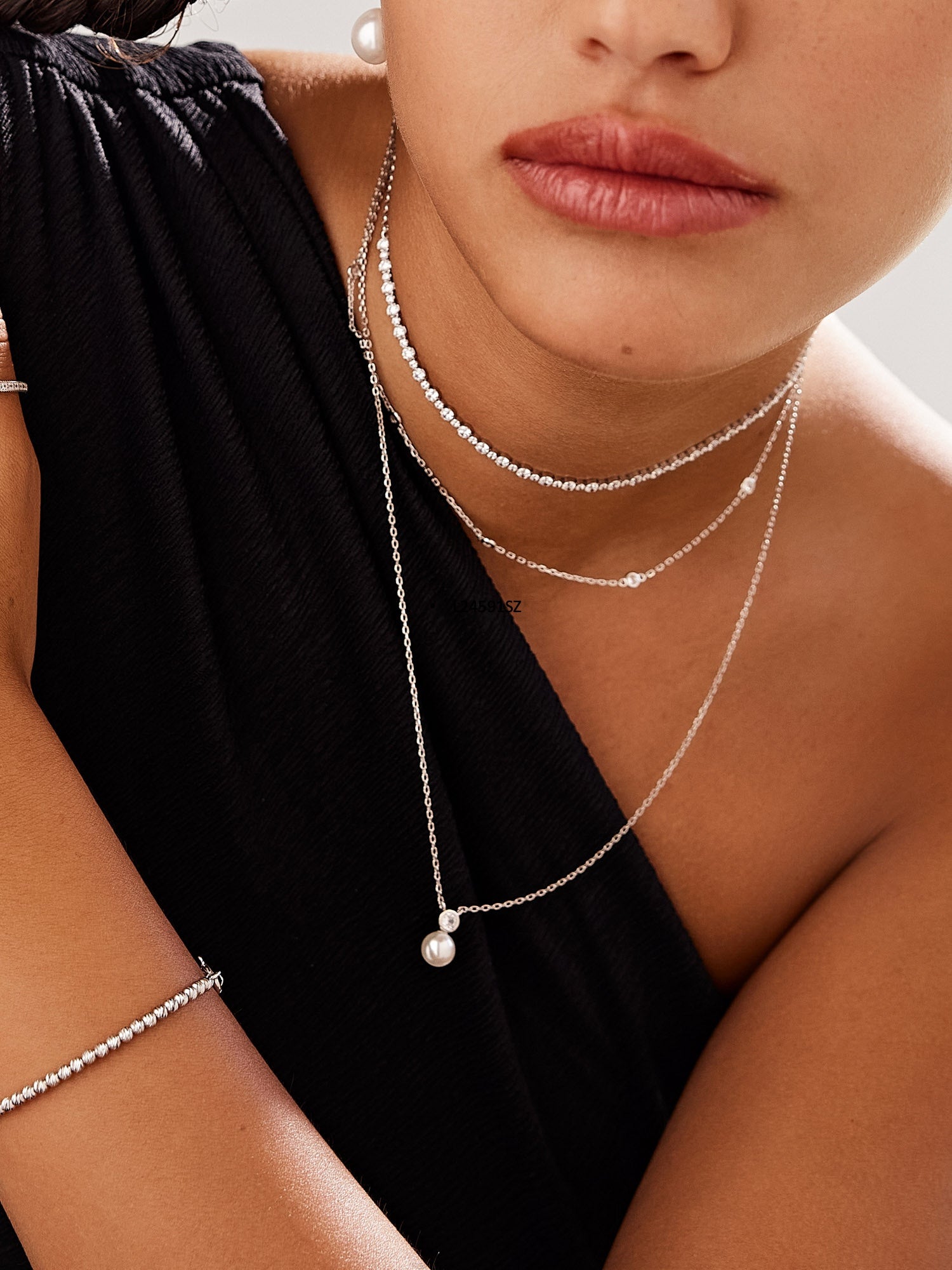 collar de perlas, Plata de Ley 925, Perla Swarovski artificial