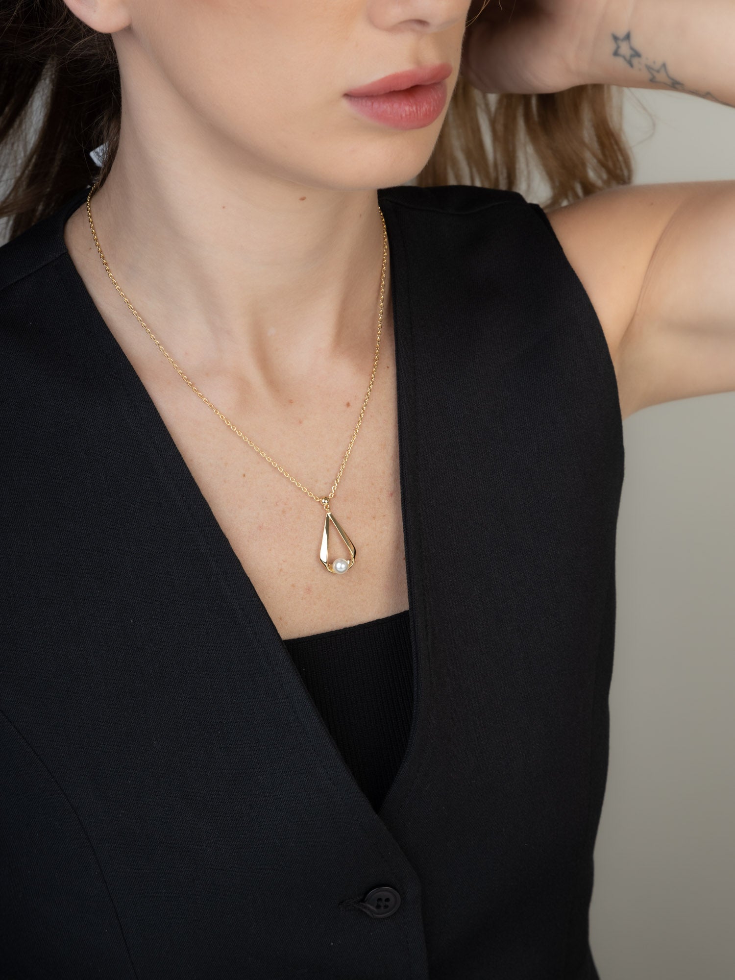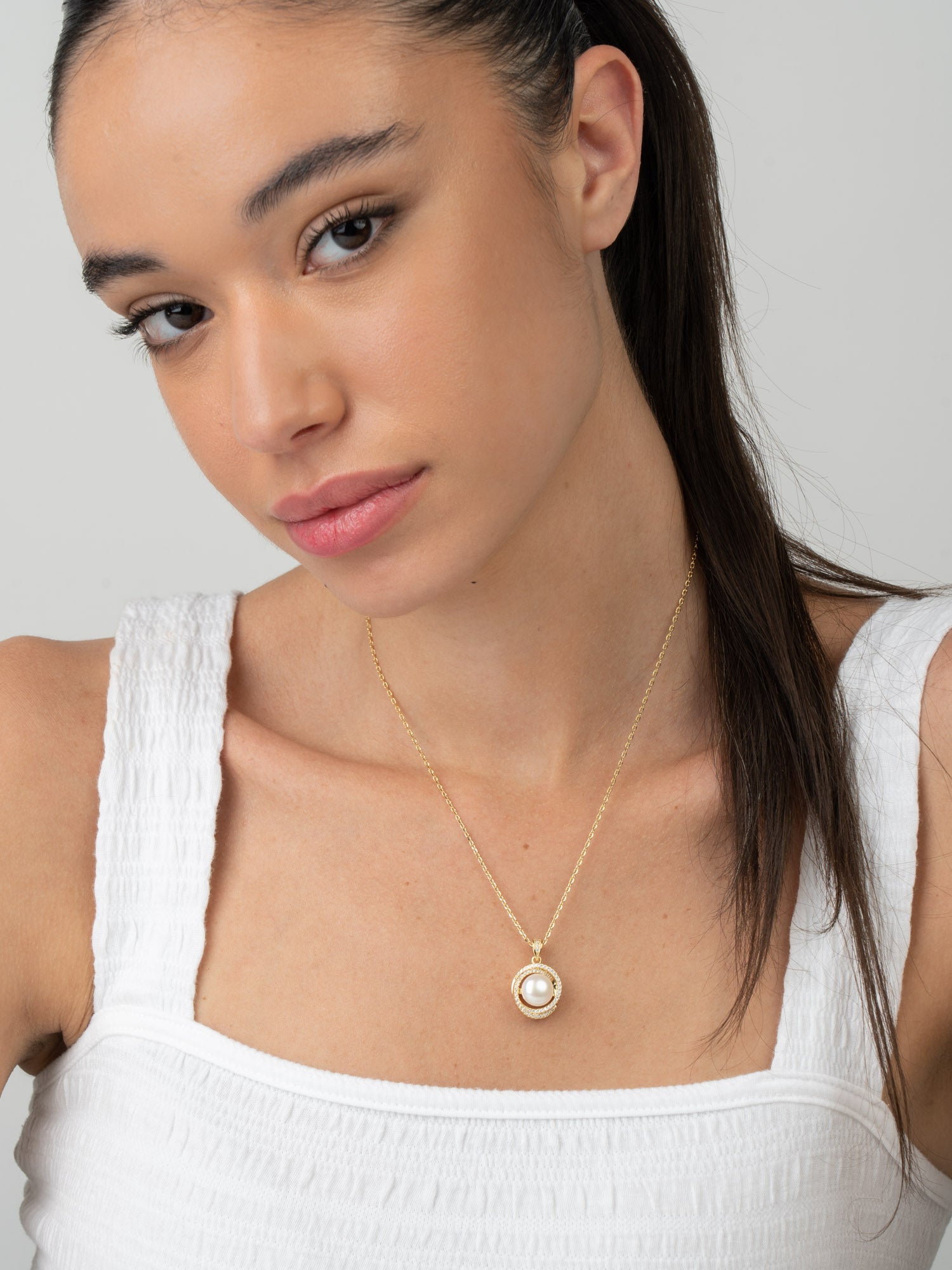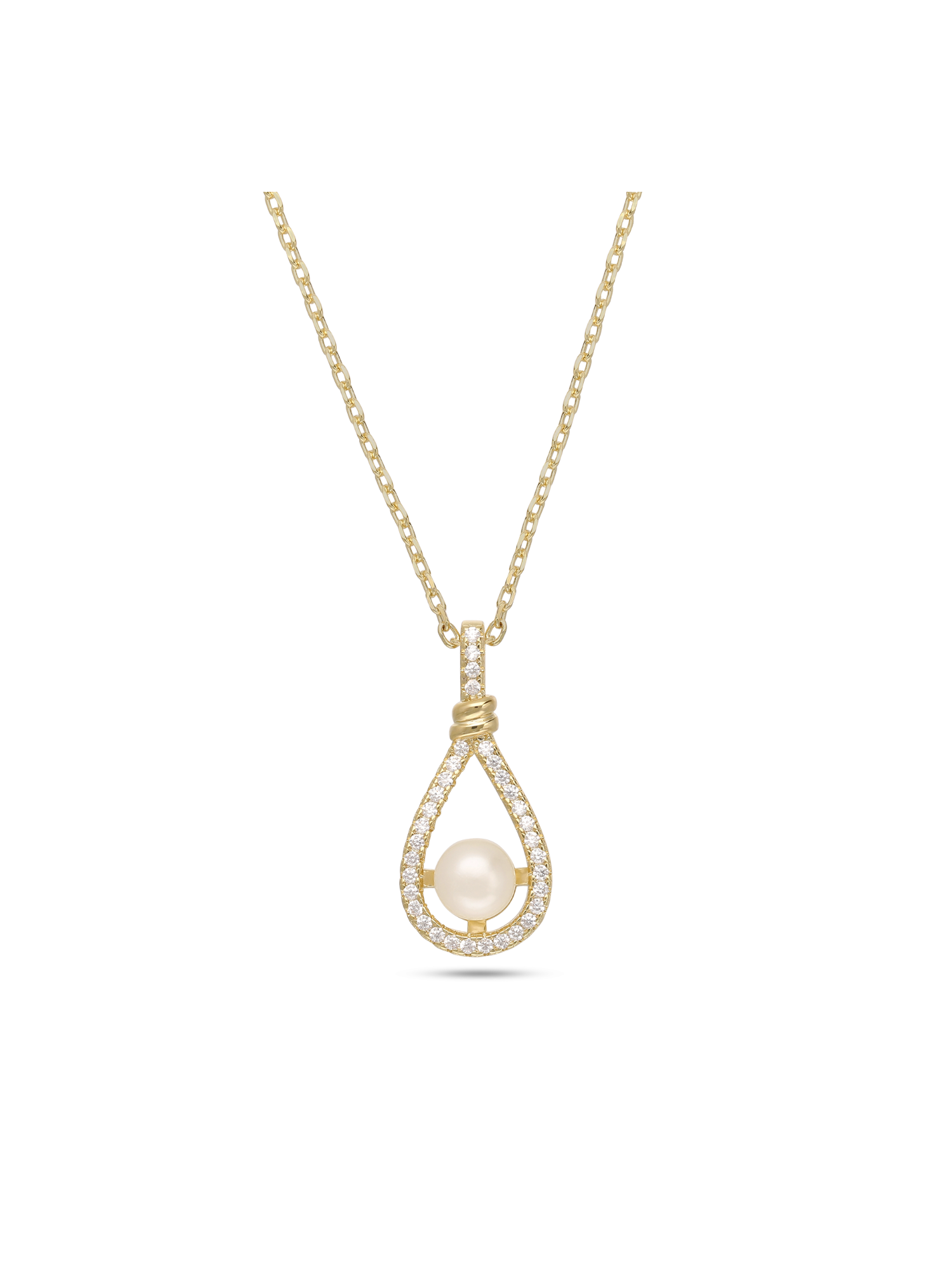 Collar colgante, Bañado en oro, Zirconia cúbica artificial, Perla cultivada