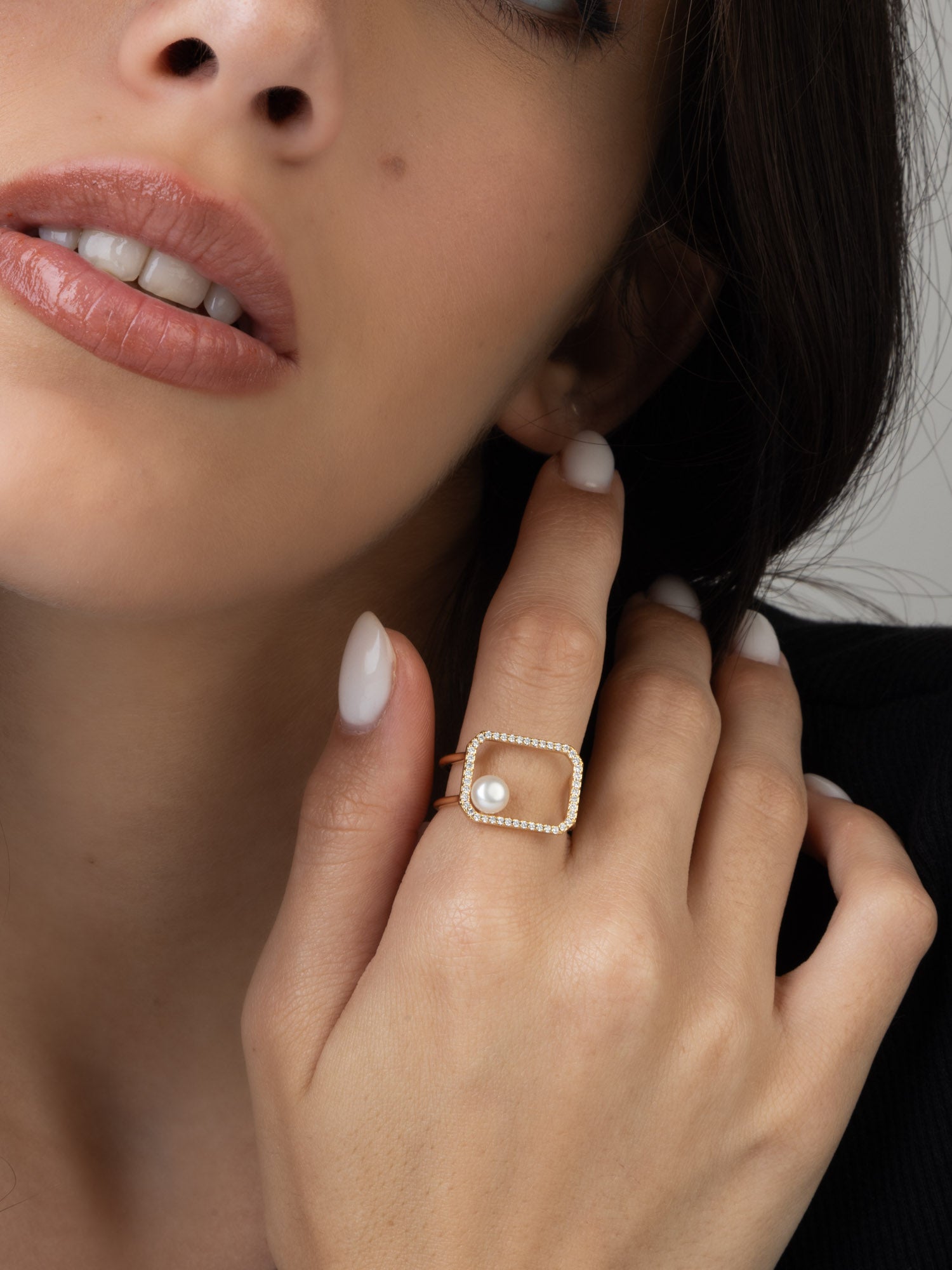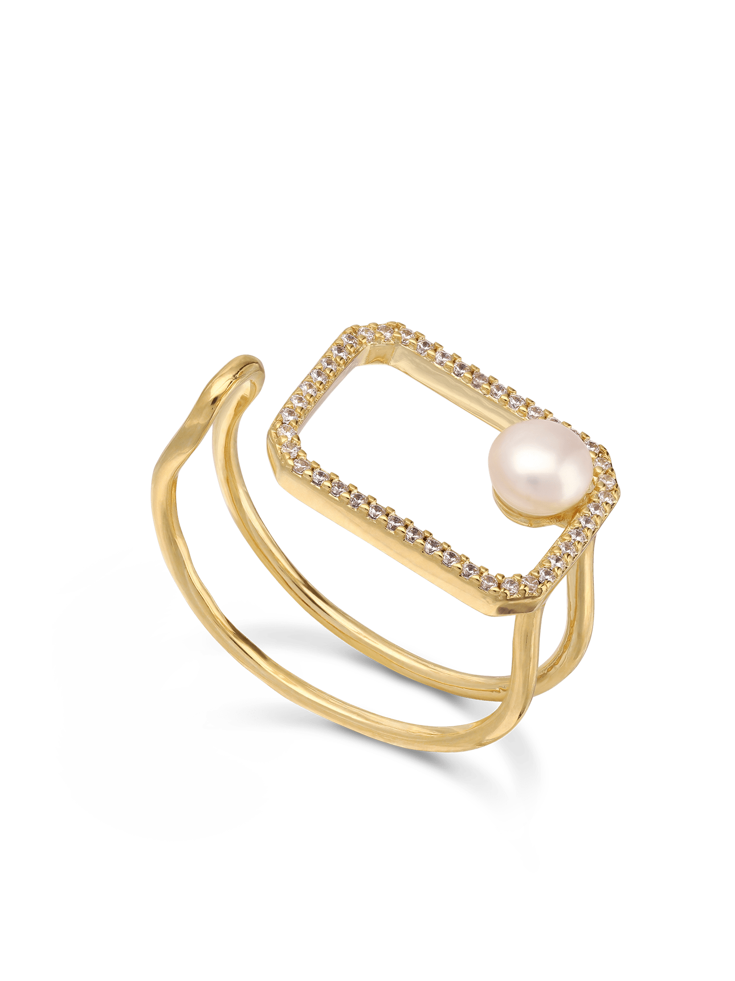 Anillo Delicado, Bañado en oro, Zirconia cúbica artificial, Madreperla artificial
