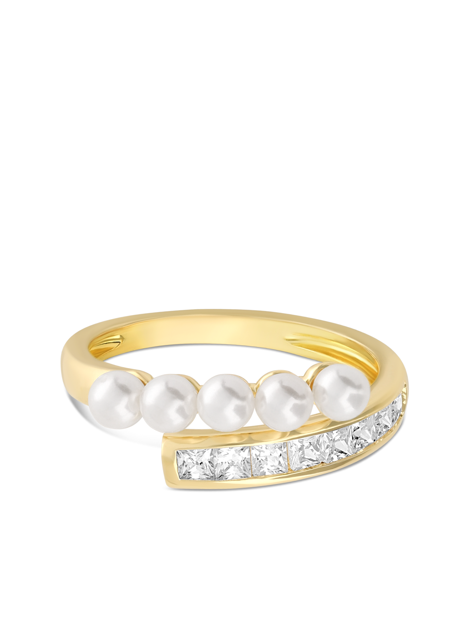 Anillo Delicado, Bañado en oro, Zirconia cúbica artificial, Perla cultivada