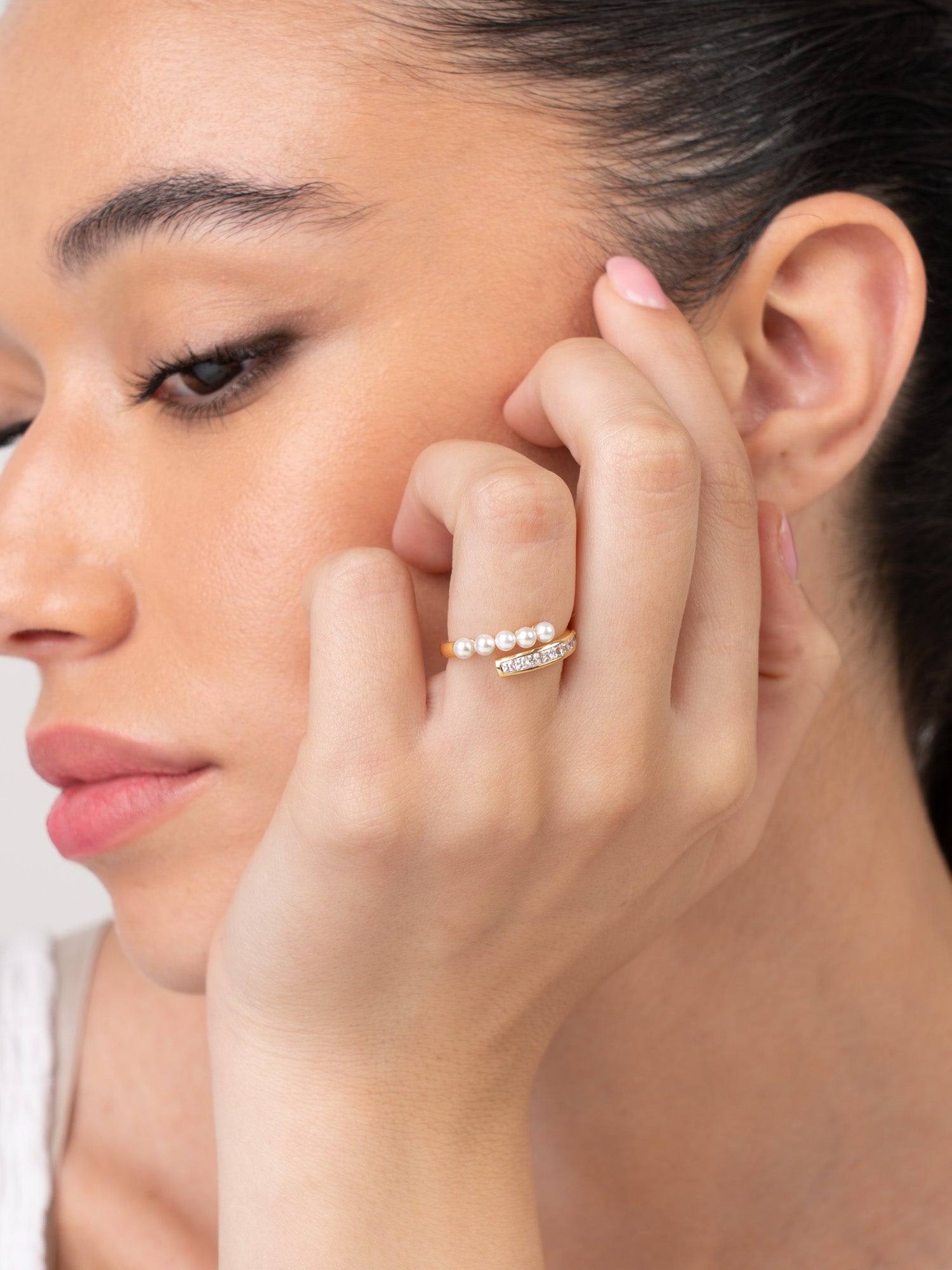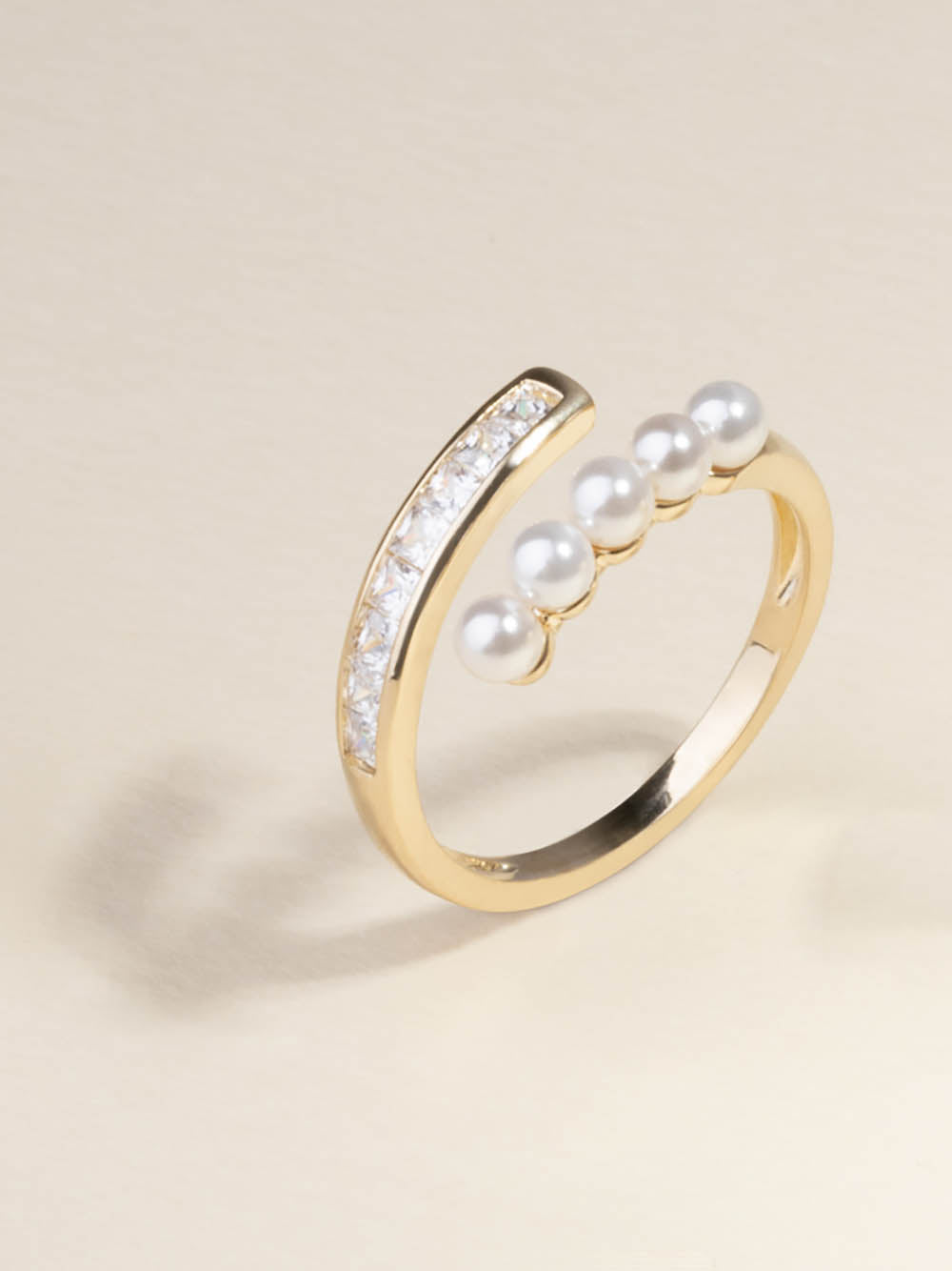 Anillo Delicado, Bañado en oro, Zirconia cúbica artificial, Perla Swarovski artificial