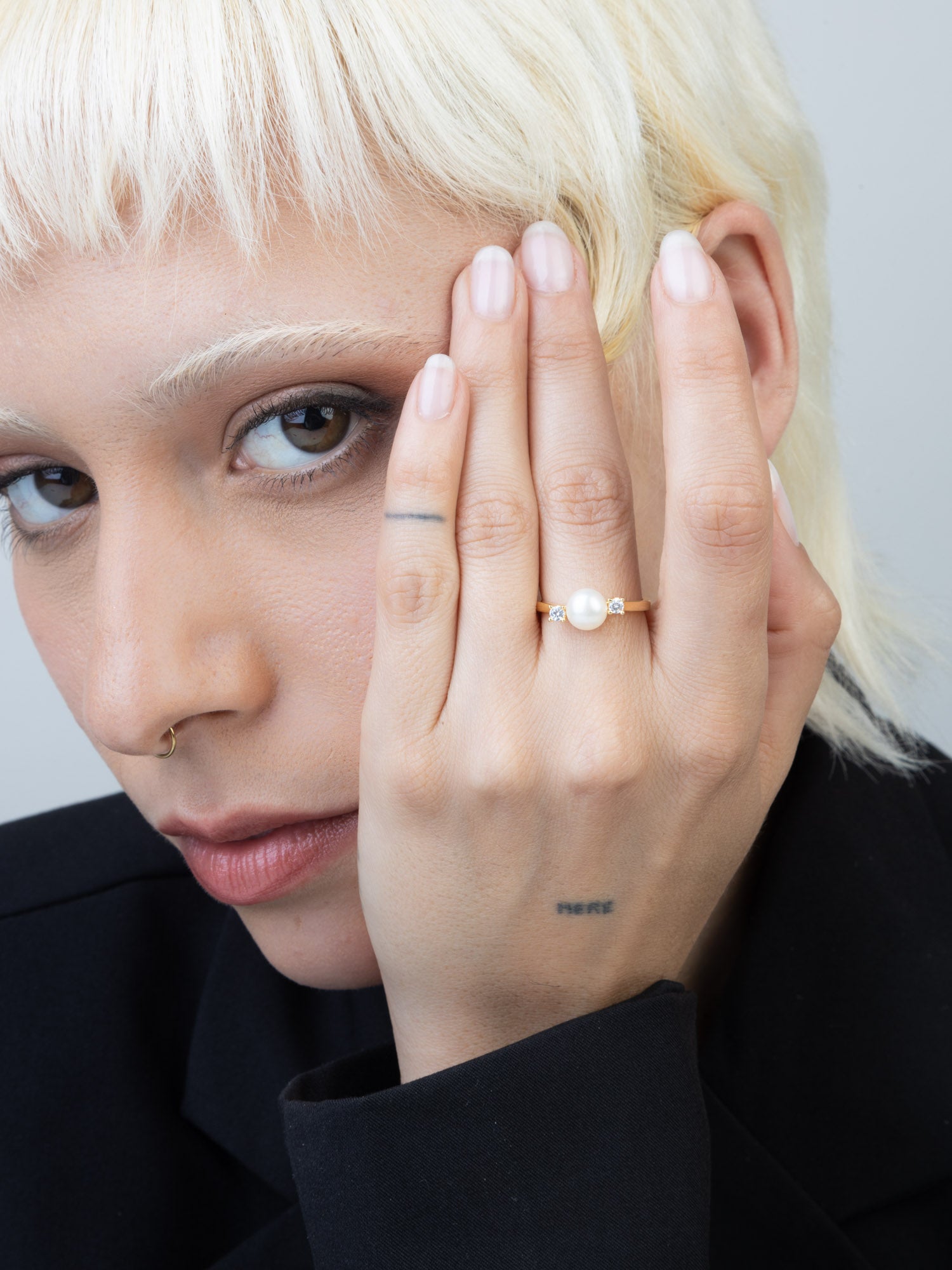 Anillo de Declaración, Bañado en oro, Zirconia cúbica artificial, Perla cultivada