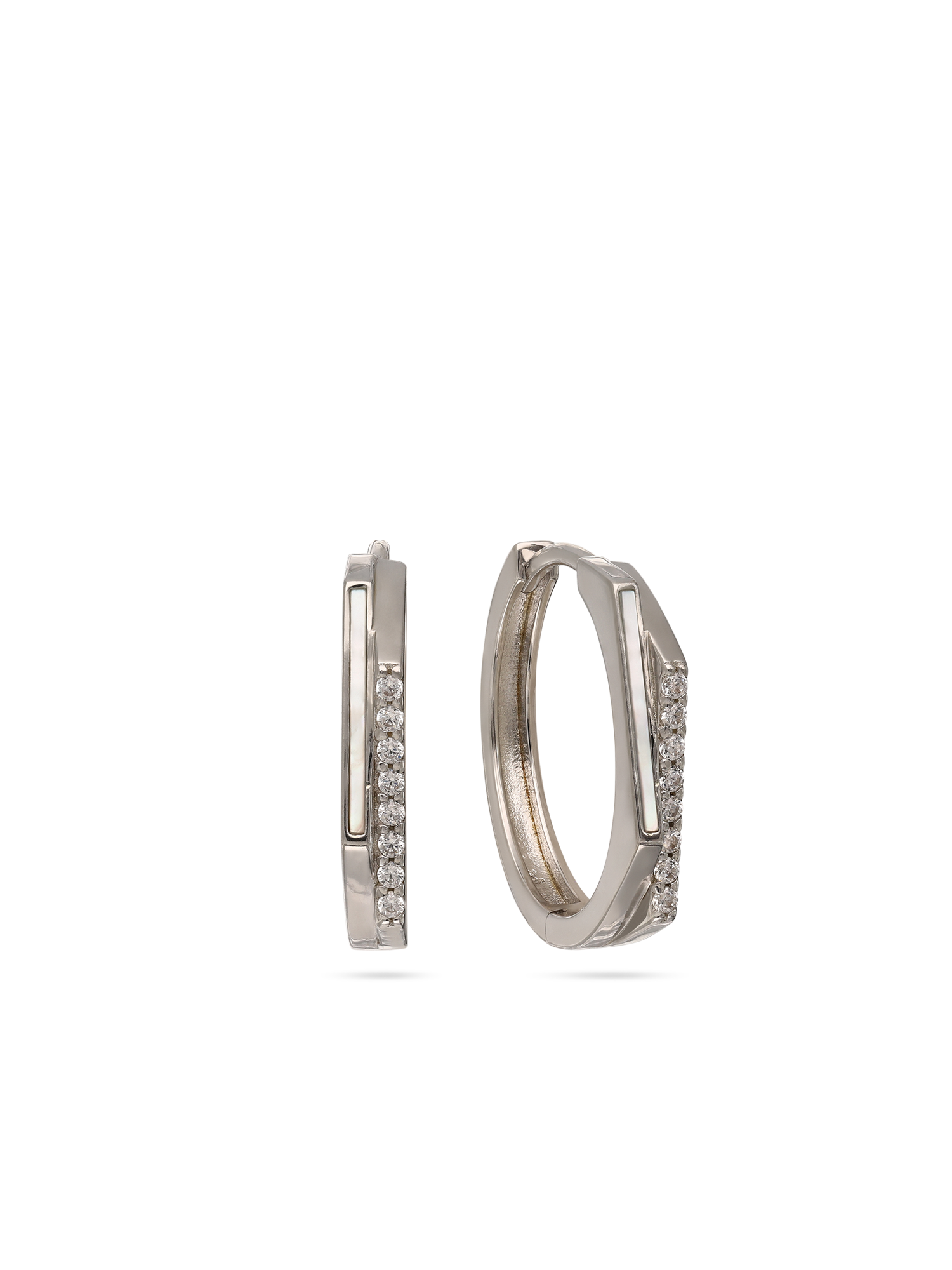 Aros, Plata 925 bañada en rodio, Zirconia cúbica artificial, Madreperla artificial