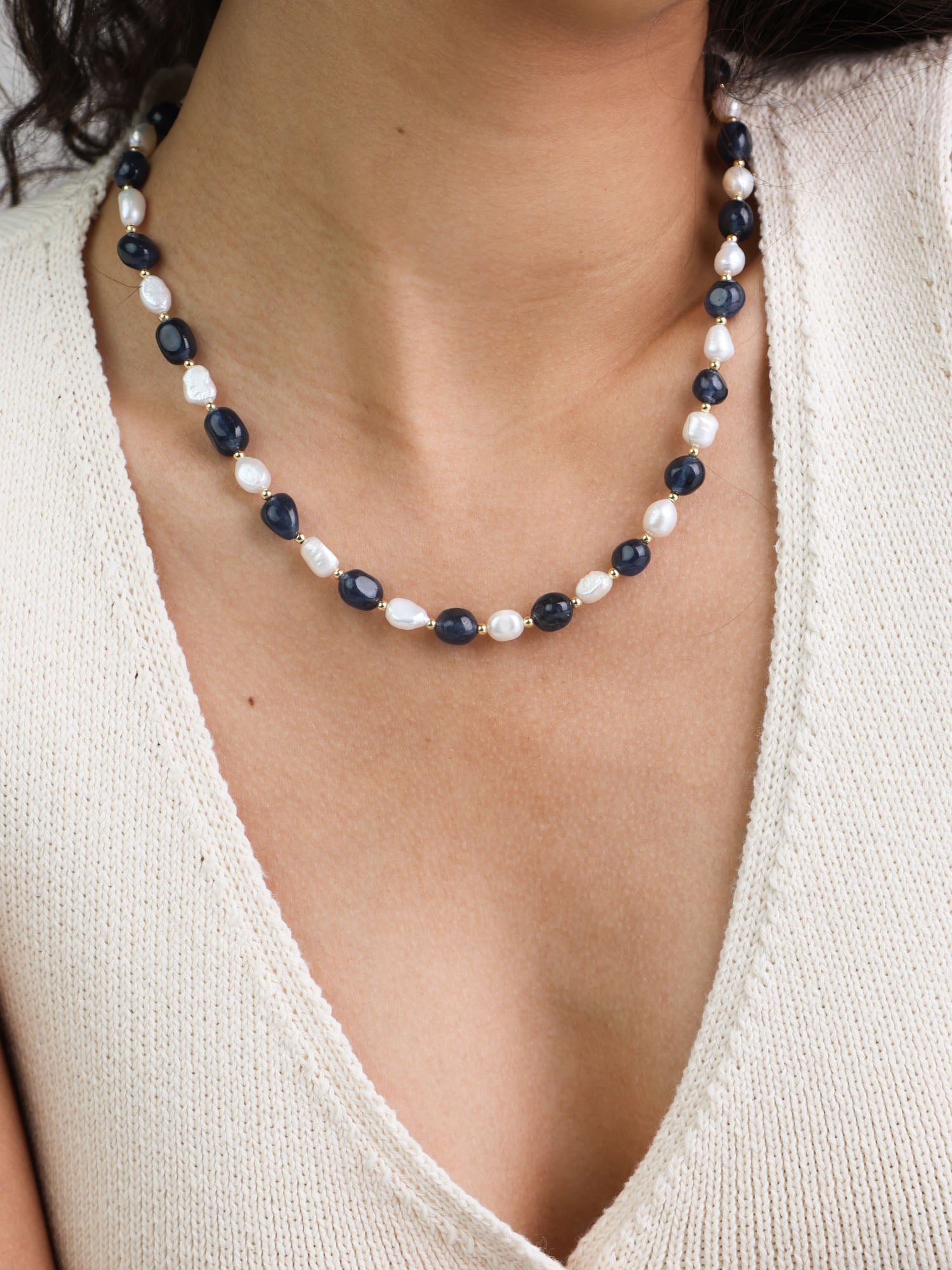 collar de piedra, Bañado en oro, Madreperla artificial