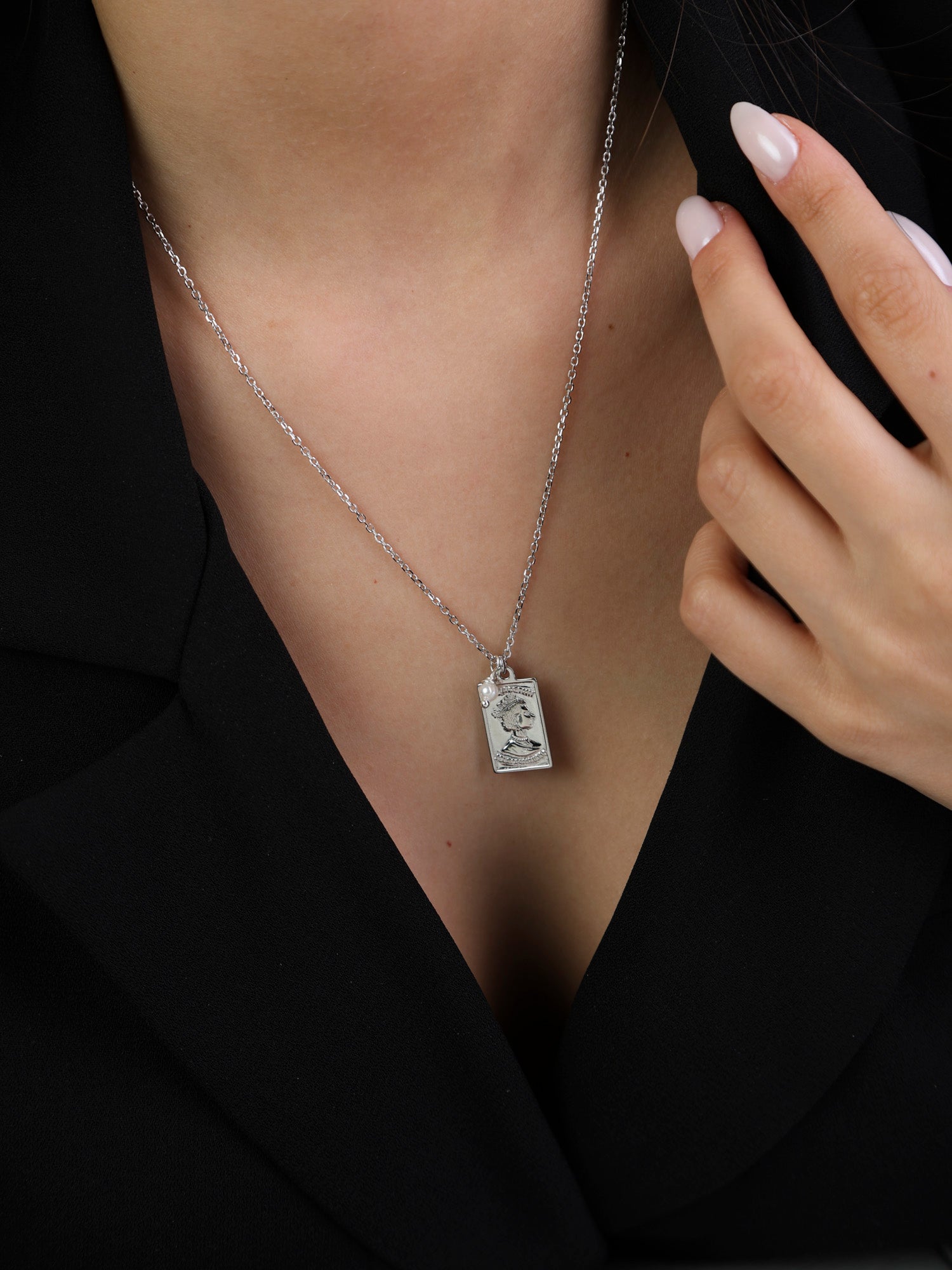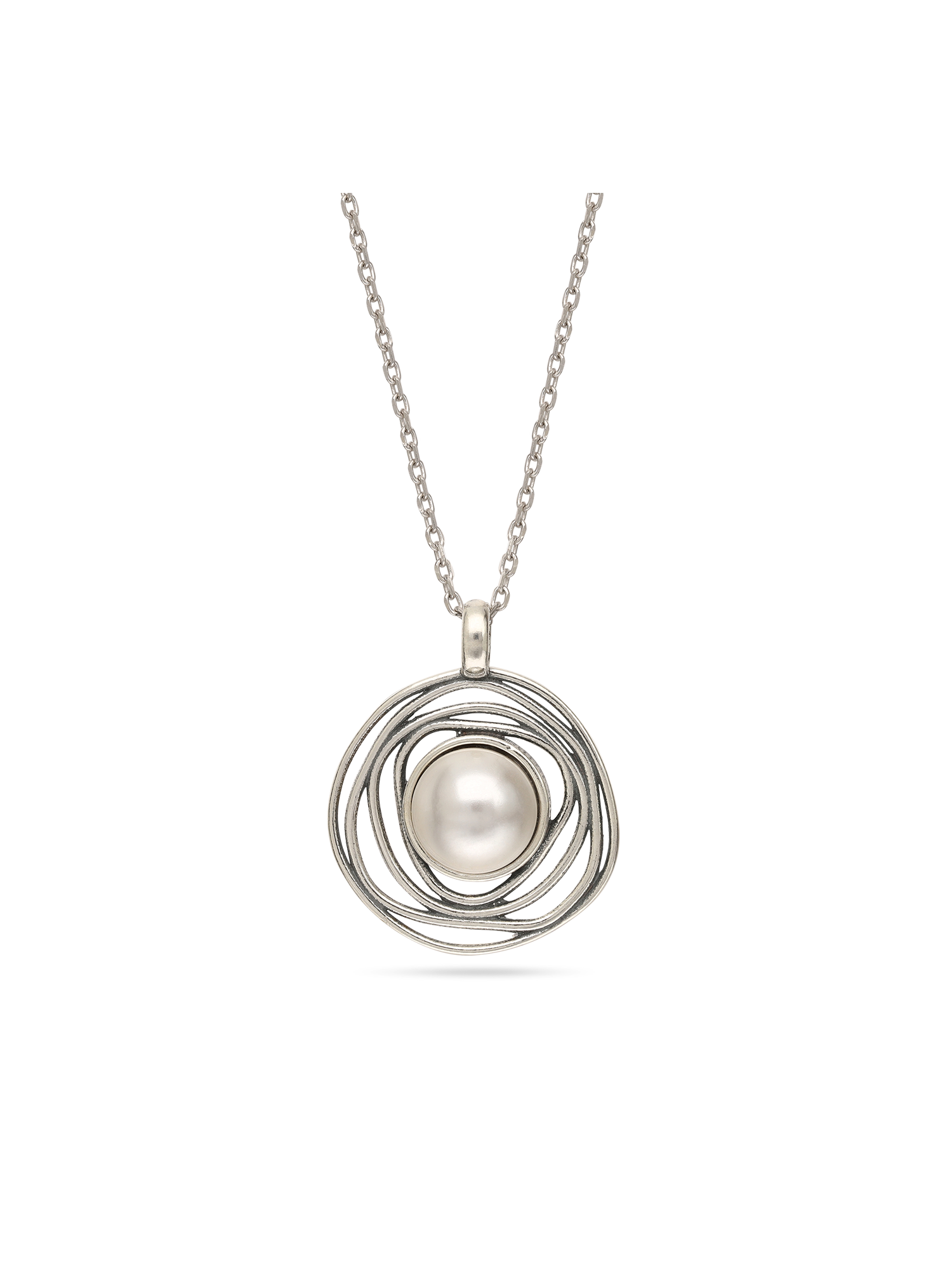 Collar colgante, Plata 925 bañada en rodio, Madreperla artificial