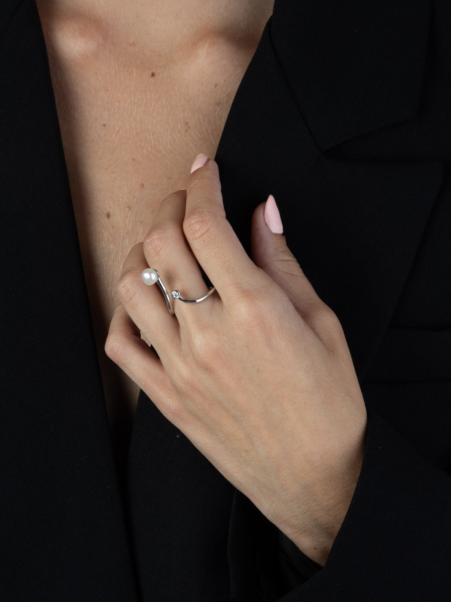 Anillo Delicado, Plata 925 bañada en rodio, Zirconia cúbica artificial, Perla cultivada