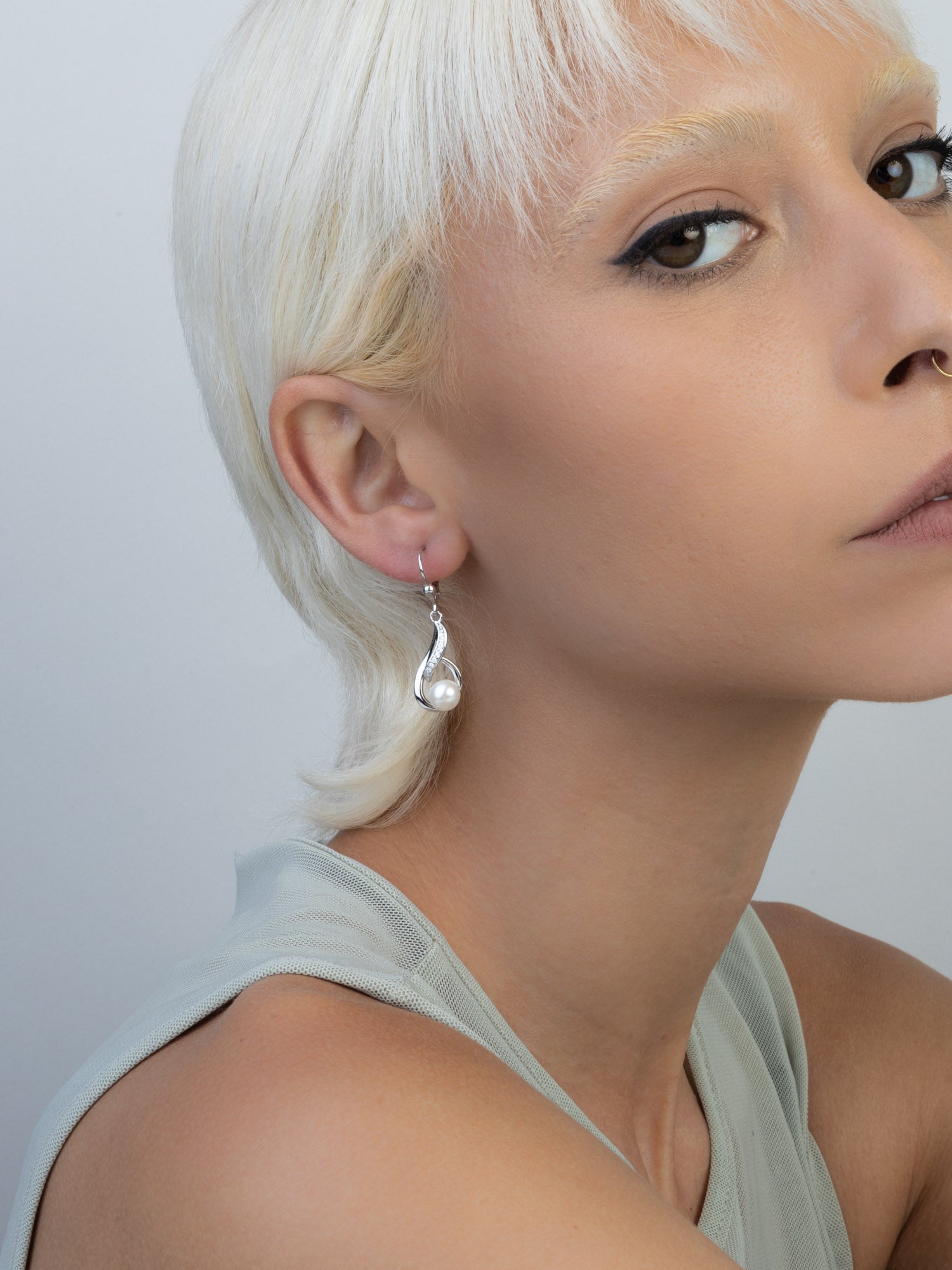 Gotas, Plata 925 bañada en rodio, Zirconia cúbica artificial, Perla cultivada
