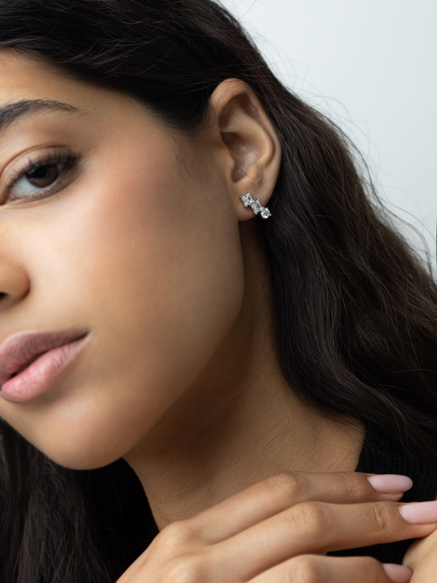 Tuerca, Plata 925 bañada en rodio, Zirconia cúbica artificial