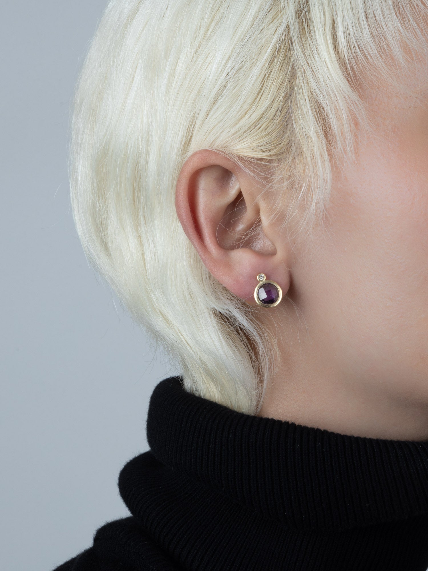 Tuerca, Bañado en oro, Zirconia cúbica artificial, Amatista artificial