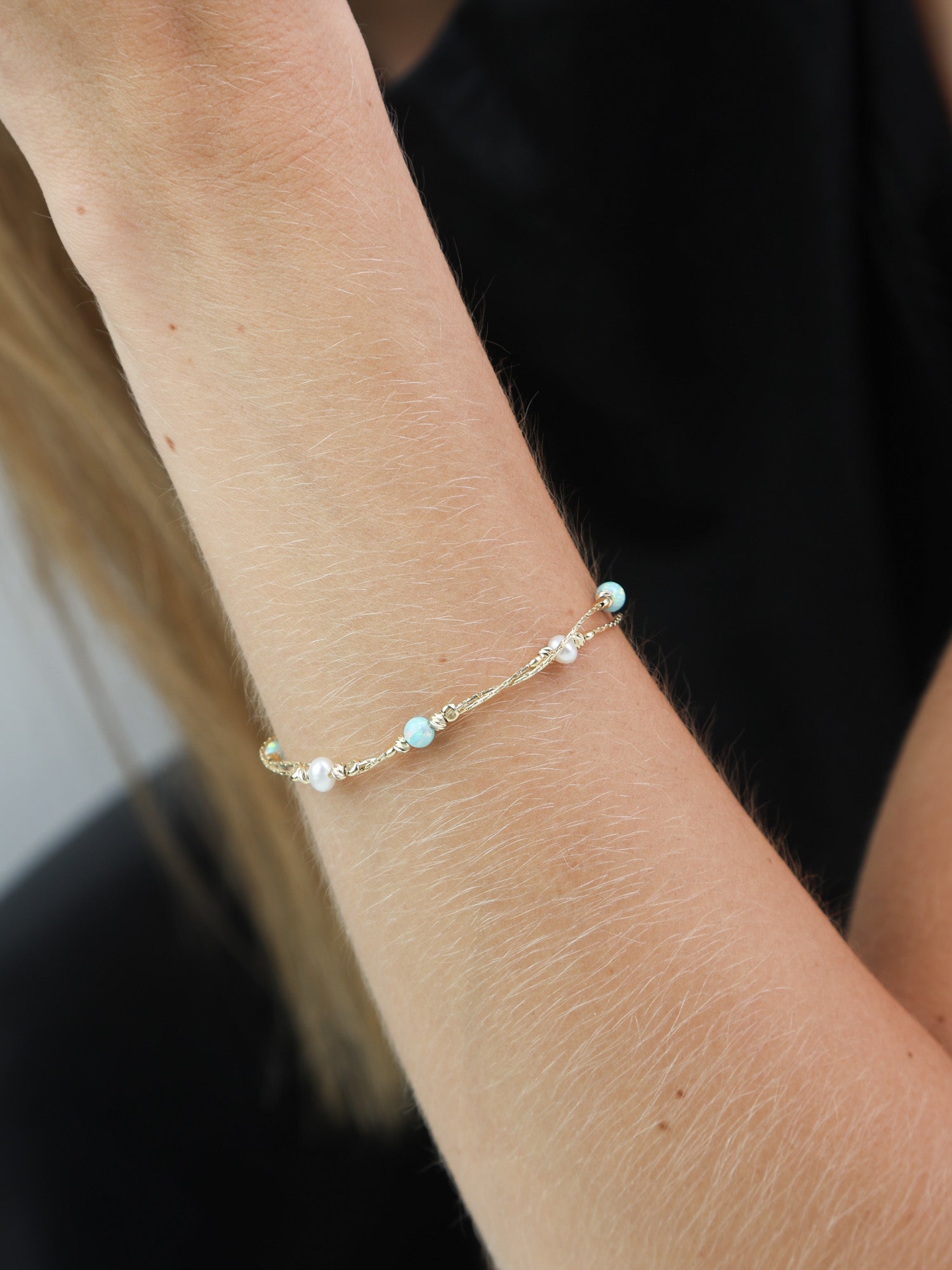 Pulseras Delicadas, Bañado en oro, Perla cultivada, Ópalo artificial