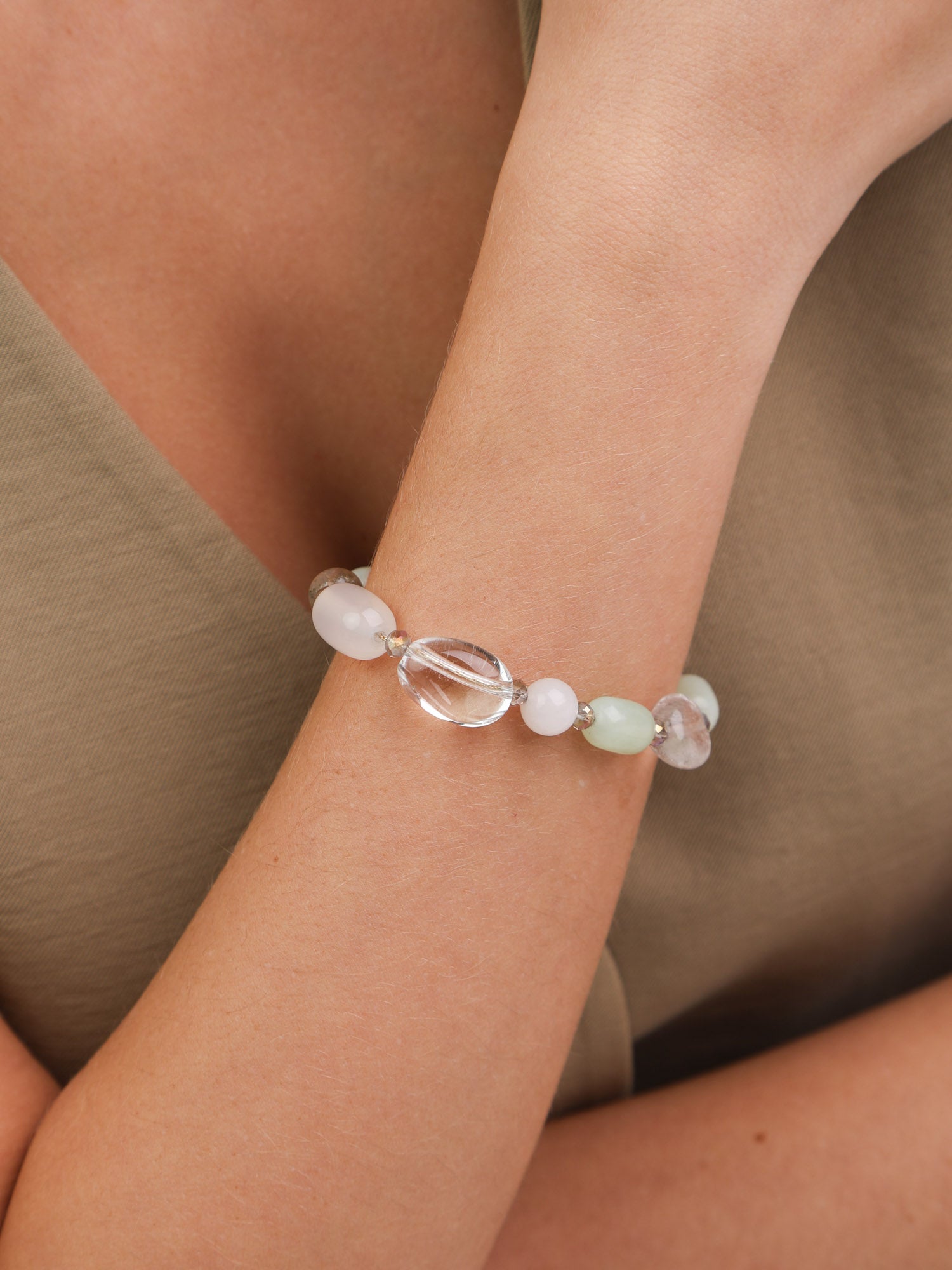 Pulsera de piedra, Bañado en oro, Amatista artificial, Cuarzo rosa artificial, Perla cultivada, Jadeíta artificial, Cuarzo artificial