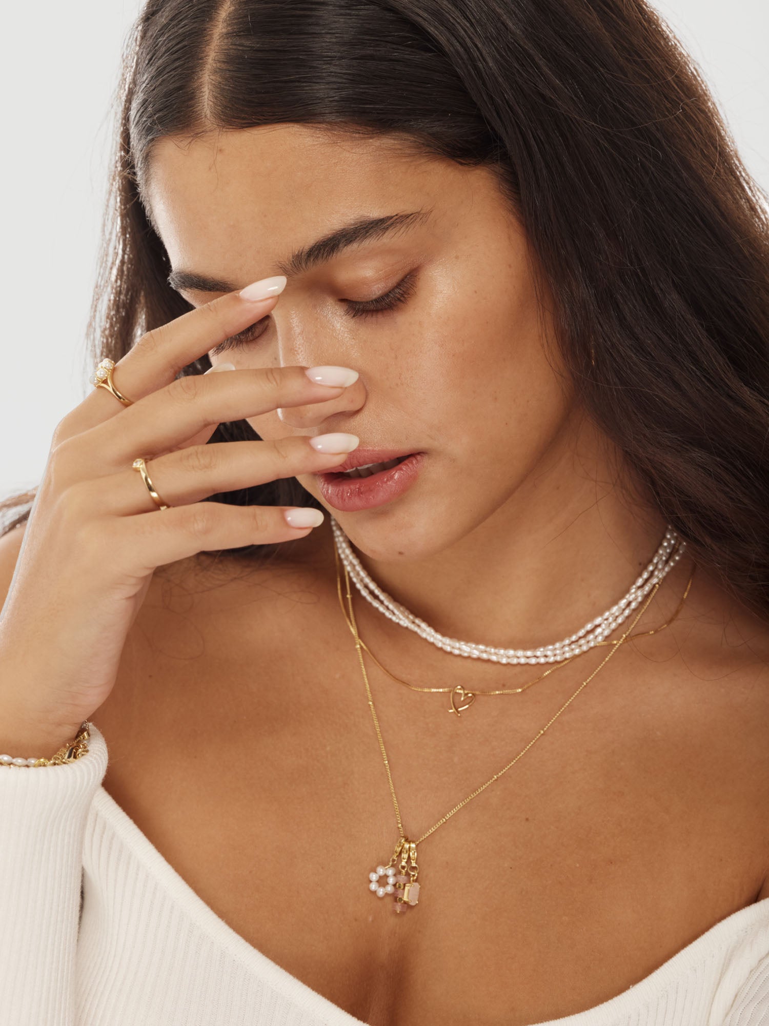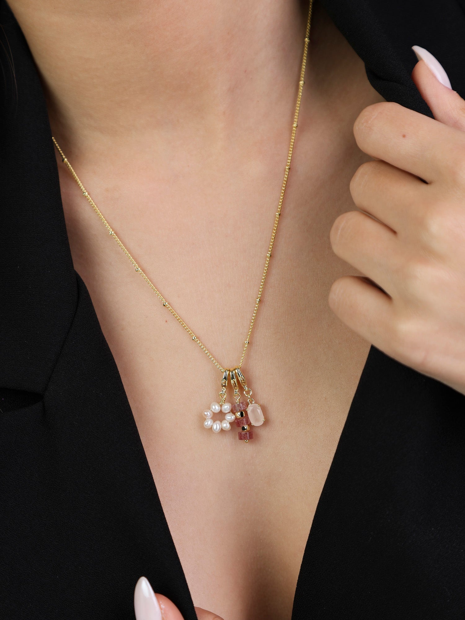 Collar colgante, Bañado en oro, Madreperla artificial, Cuarzo artificial