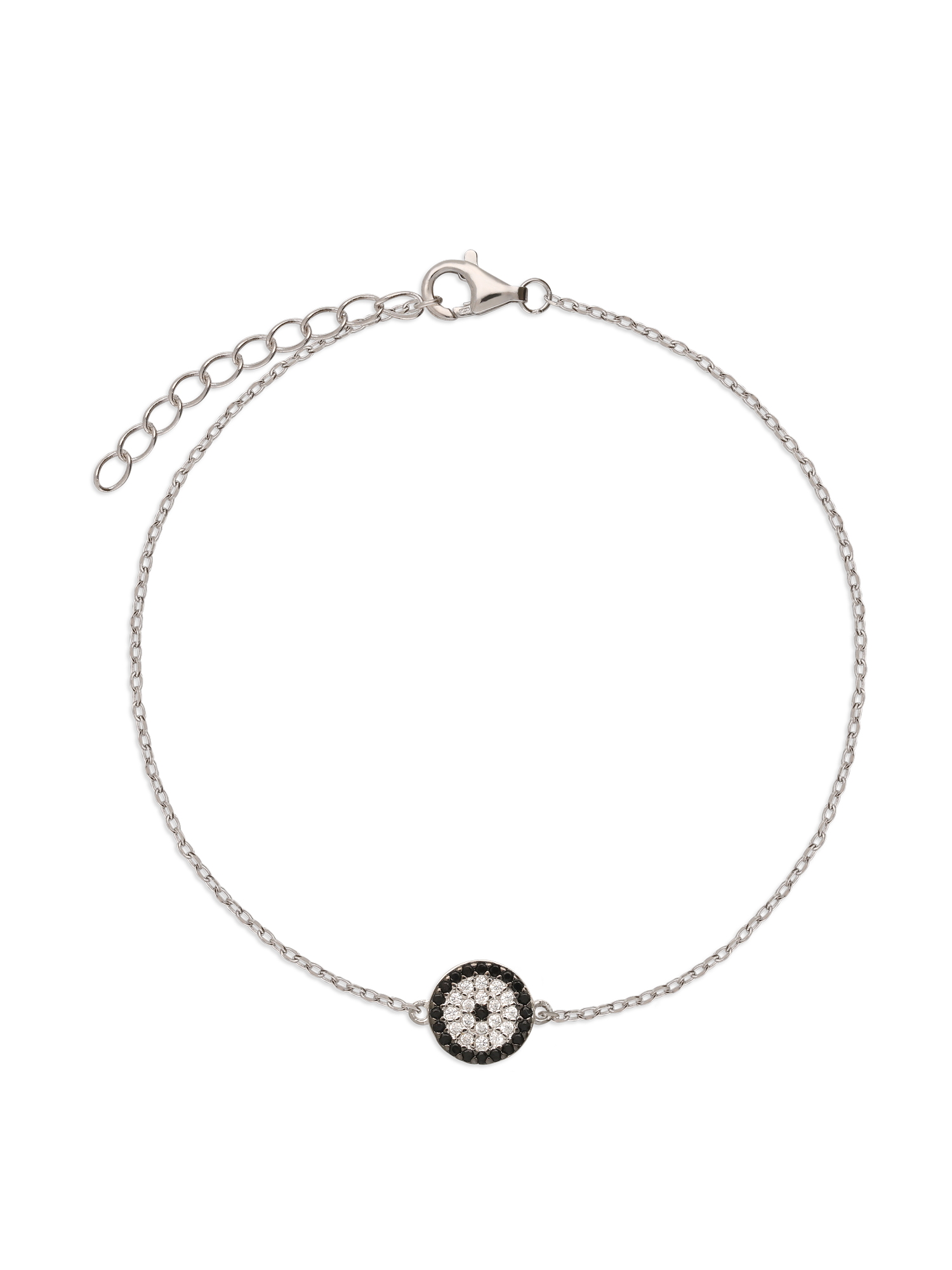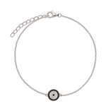 Pulseras Delicadas, Plata de Ley 925, Zirconia cúbica artificial, Ónix artificial, Negro, Claro, Círculo, Artificial, Color plateado, longitud del colgante: 0.7 cm, 1.40 g