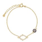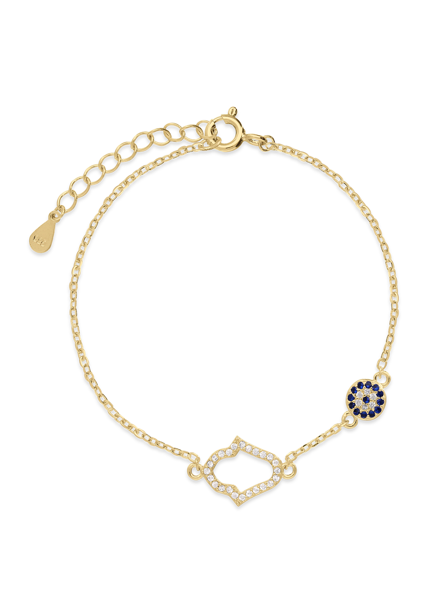 Pulseras Delicadas, Bañado en oro, Zirconia cúbica artificial, Azul, Claro, Hamsa, Círculo, Artificial, Color dorado, 1.70 g