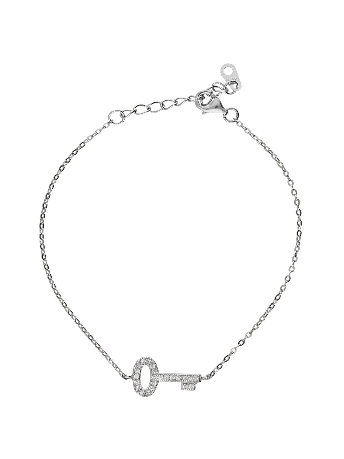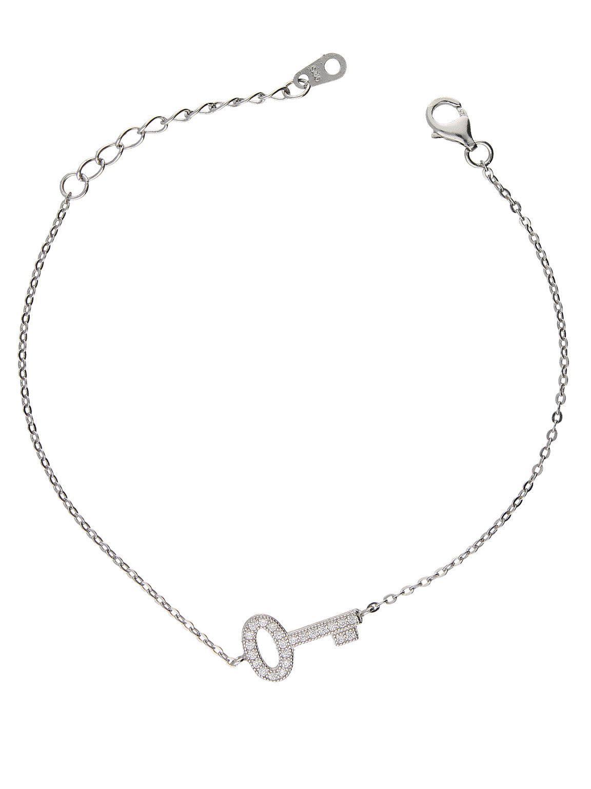Pulseras Delicadas, Plata de Ley 925, Zirconia cúbica artificial, Claro, Llave, Artificial, Color plateado, 1.30 g