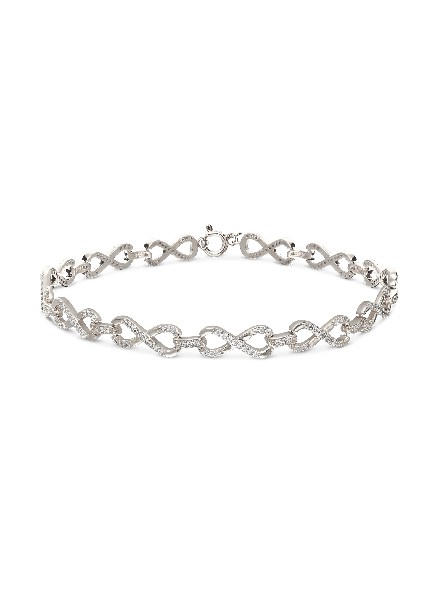 Pulseras Festivas, Plata de Ley 925, Zirconia cúbica artificial, Claro, Infinito, Artificial, Color plateado, 7.19 g