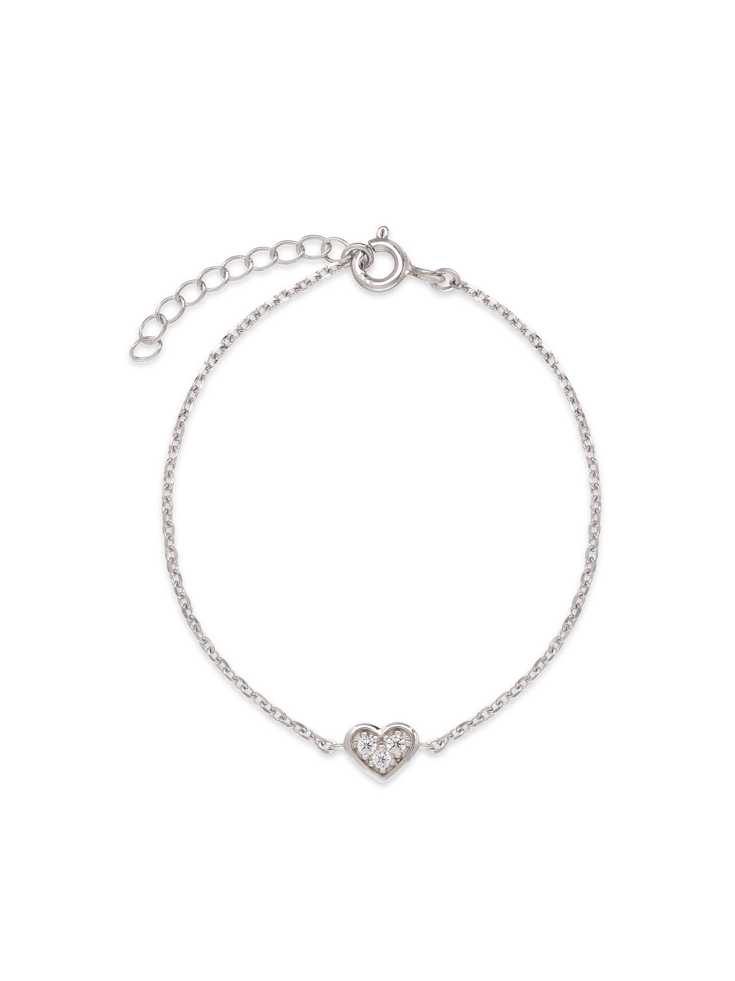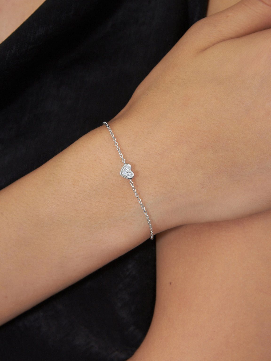 Pulseras Delicadas, Plata 925 bañada en rodio, Zirconia cúbica artificial, Claro, Corazón, Artificial, Color plateado, 1.55 g