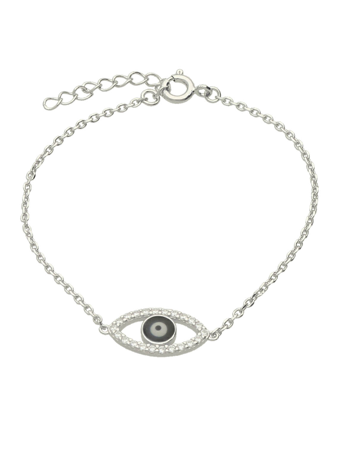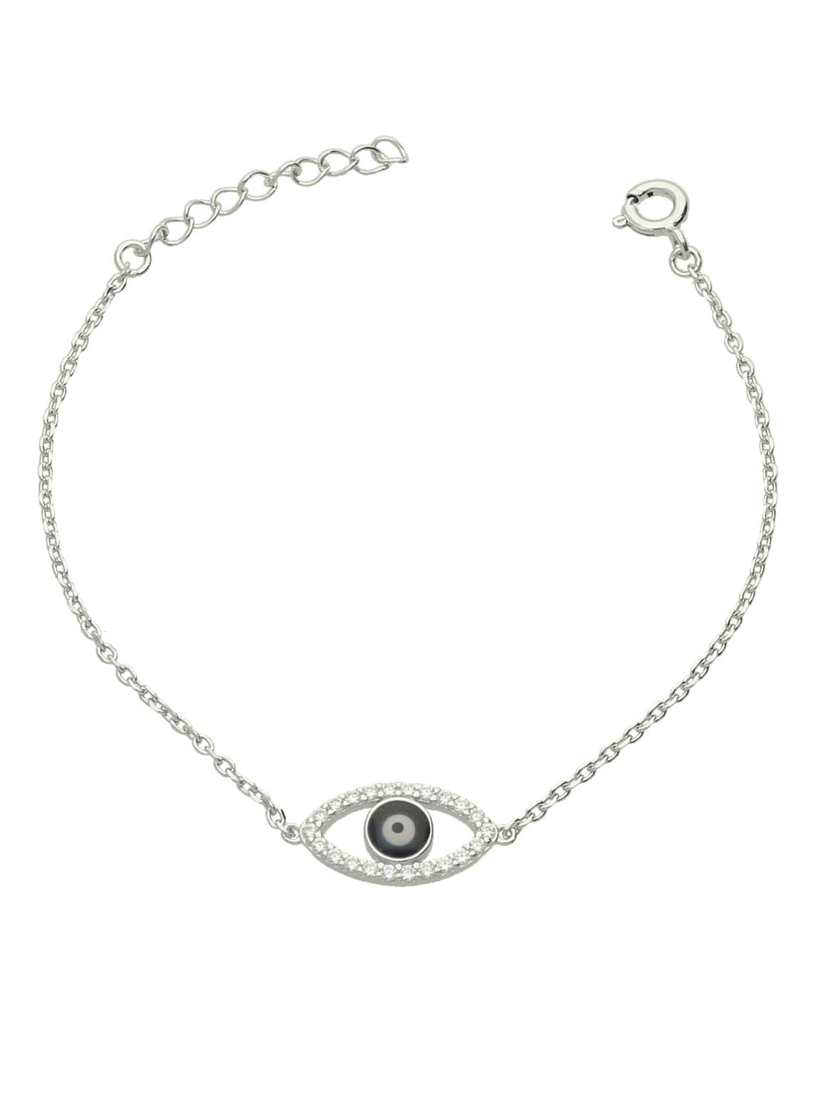 Pulseras Delicadas, Plata 925 bañada en rodio, Zirconia cúbica artificial, Esmalte, Negro, Claro, Círculo, Artificial, Color plateado, 2.24 g
