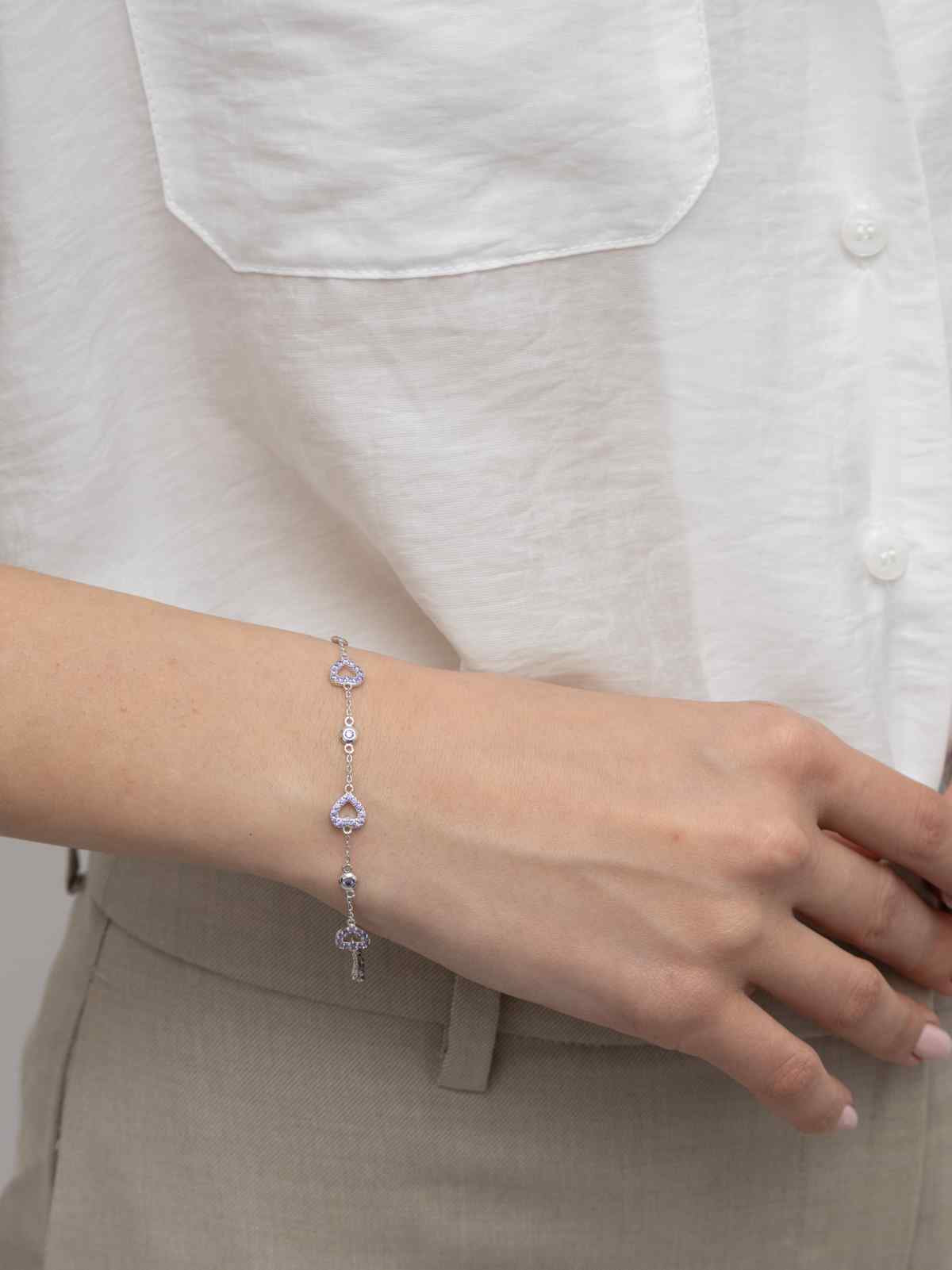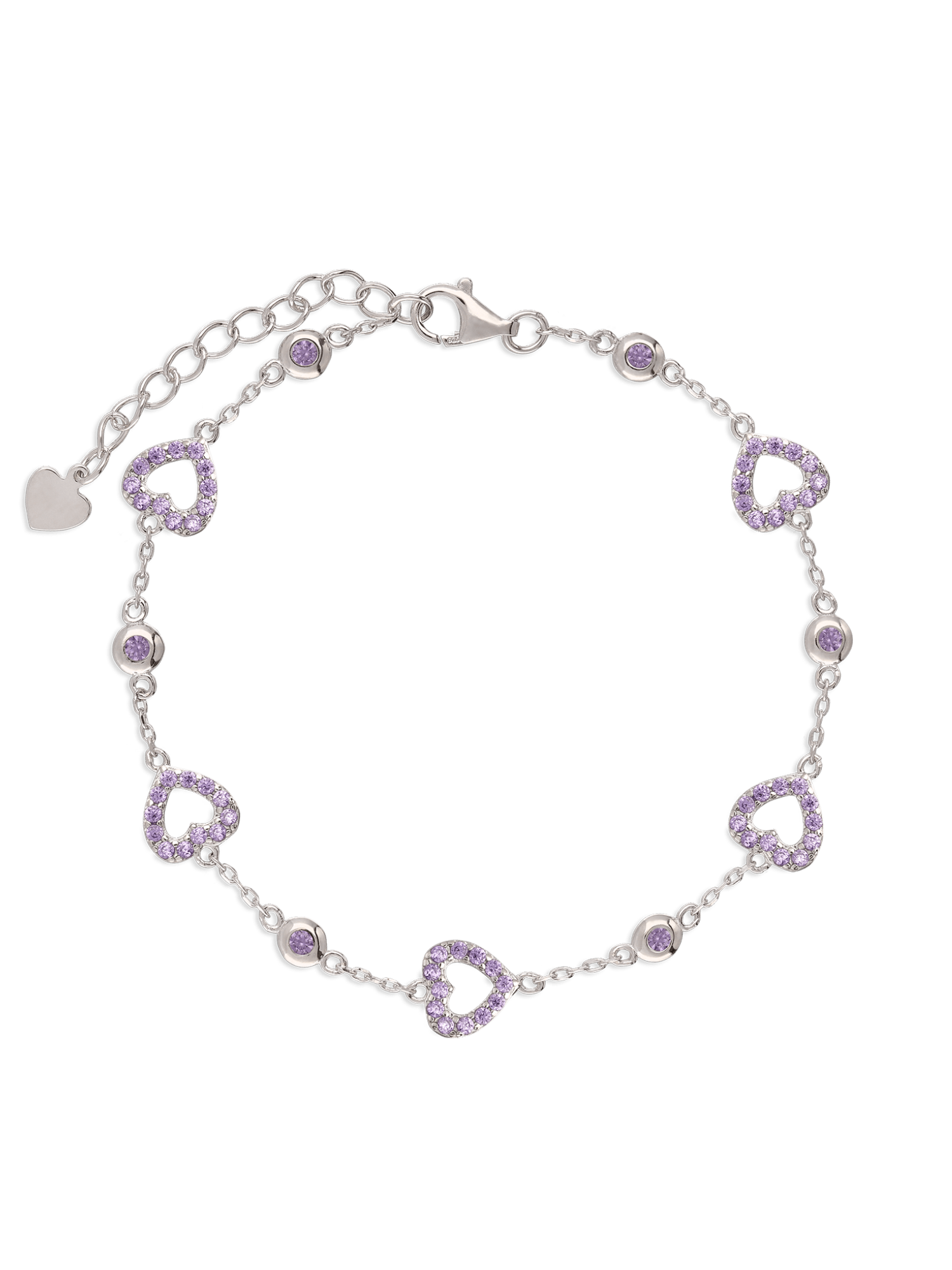 Pulseras Delicadas, Plata 925 bañada en rodio, Zirconia cúbica artificial, Violeta, Corazón, Círculo, Artificial, Color plateado, 3.42 g