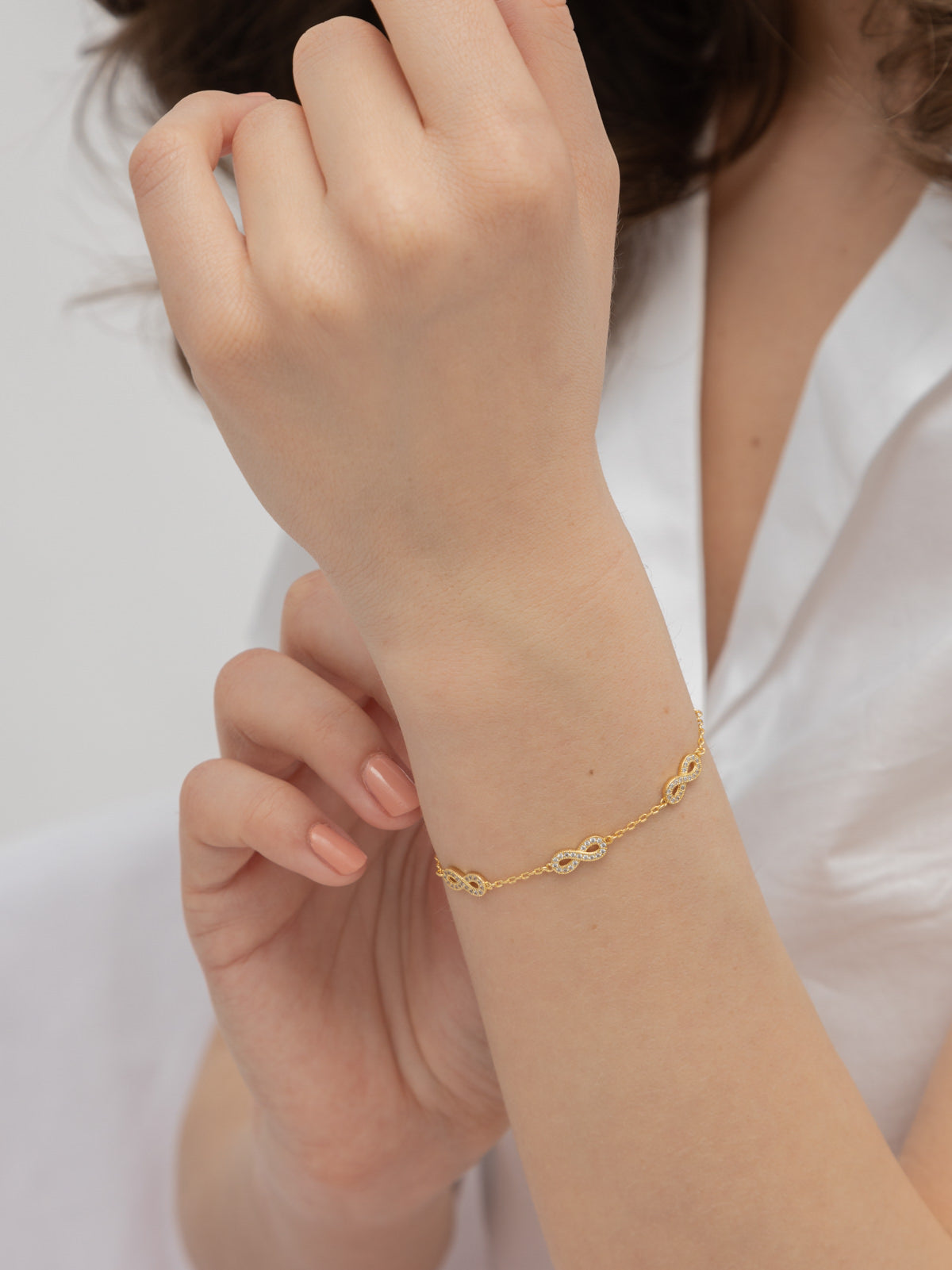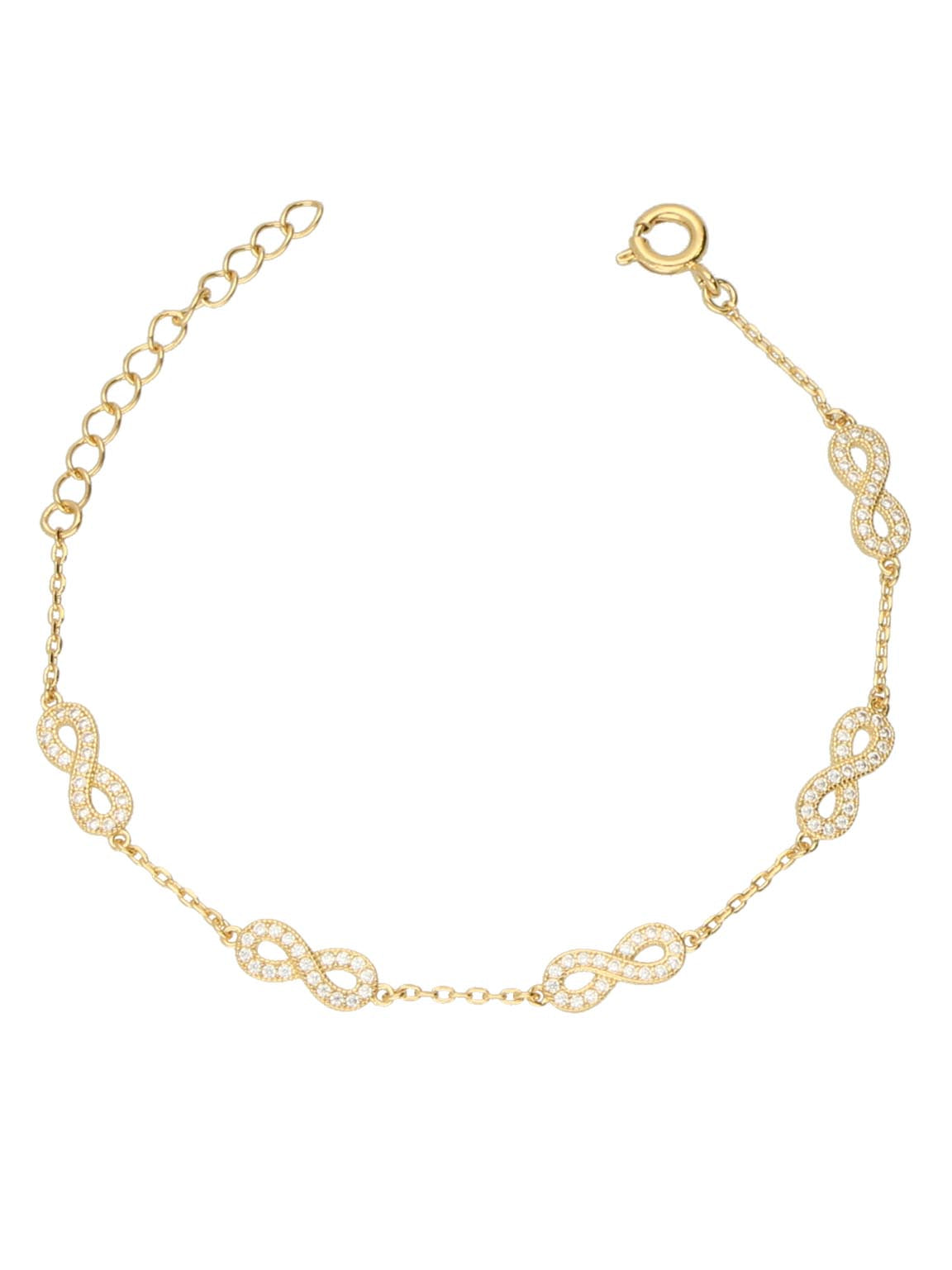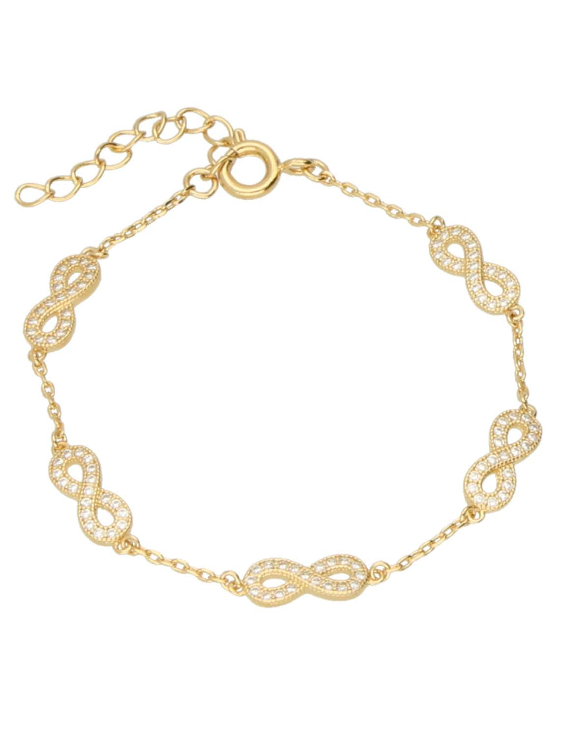 Pulseras Delicadas, Bañado en oro, Zirconia cúbica artificial, Claro, Infinito, Artificial, Color dorado, 2.73 g