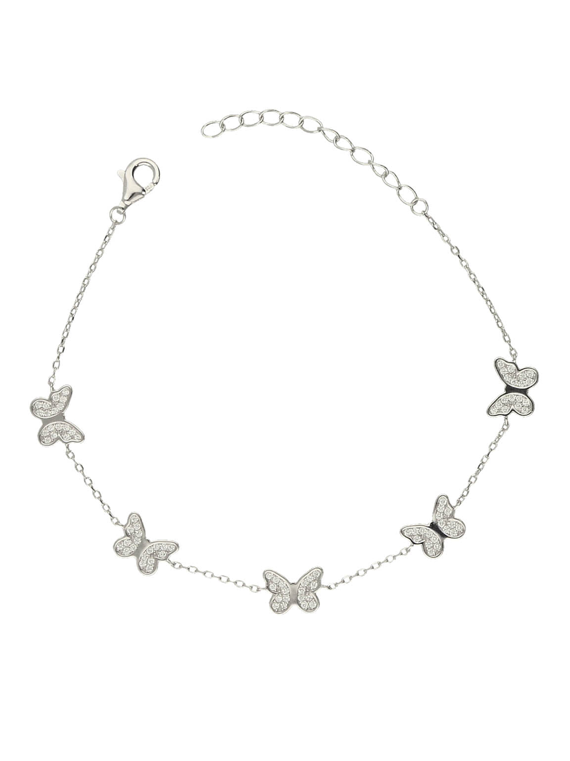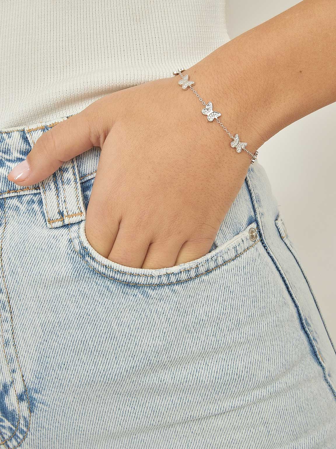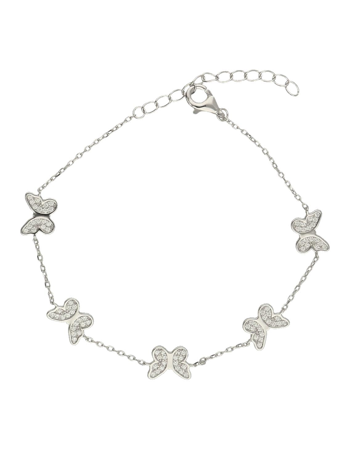Pulseras Delicadas, Plata 925 bañada en rodio, Zirconia cúbica artificial, Claro, Mariposa, Artificial, Color plateado, 3.34 g