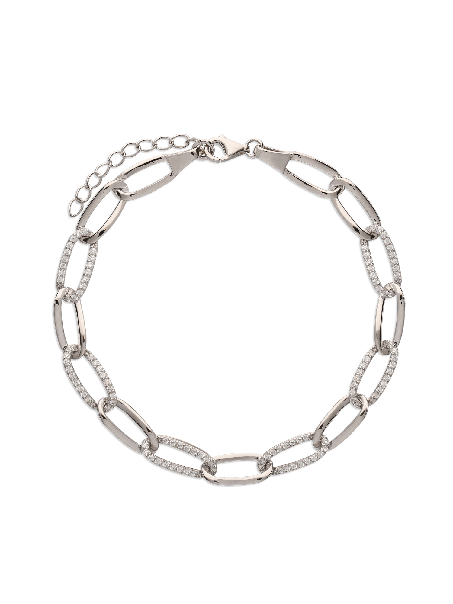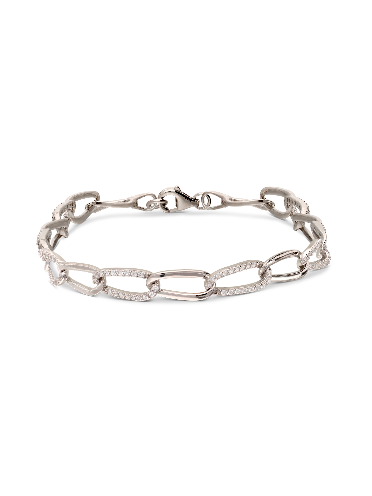 Pulseras Festivas, Plata 925 bañada en rodio, Zirconia cúbica artificial, Claro, Círculo, Artificial, Color plateado, 7.20 g