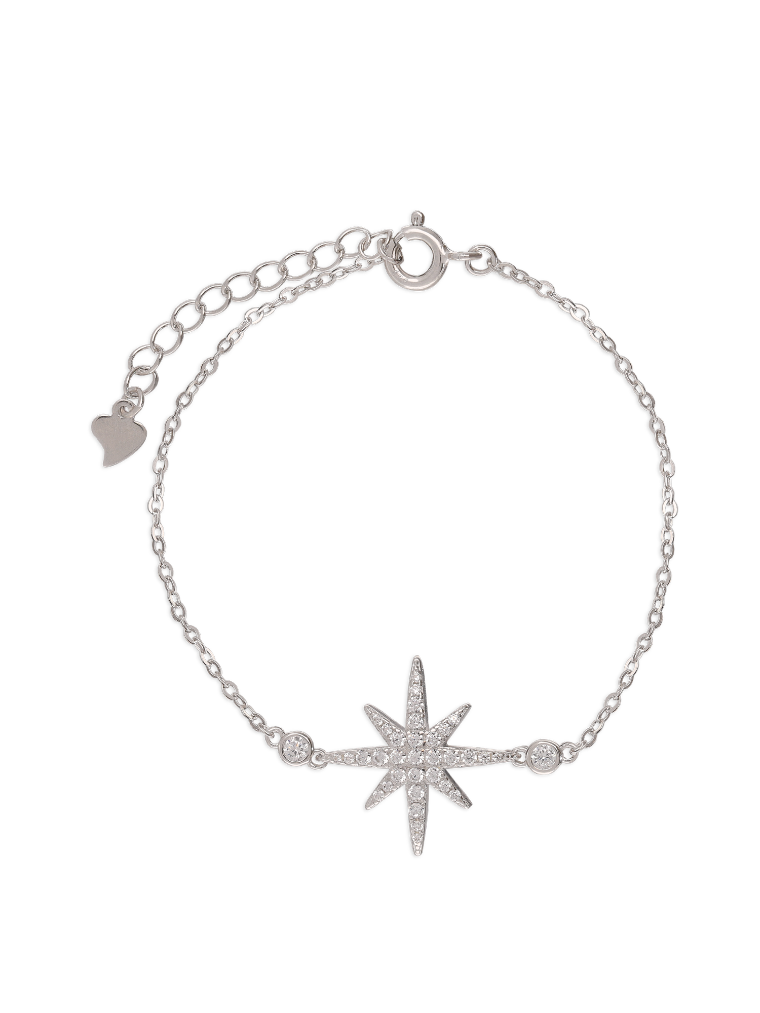 Pulseras Delicadas, Plata 925 bañada en rodio, Zirconia cúbica artificial, Claro, Estrella, Artificial, Color plateado, longitud del colgante: 1.5 cm, 2.83 g