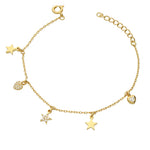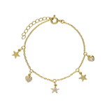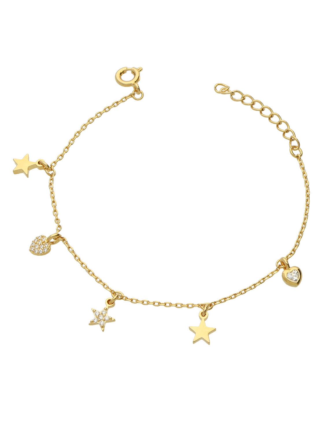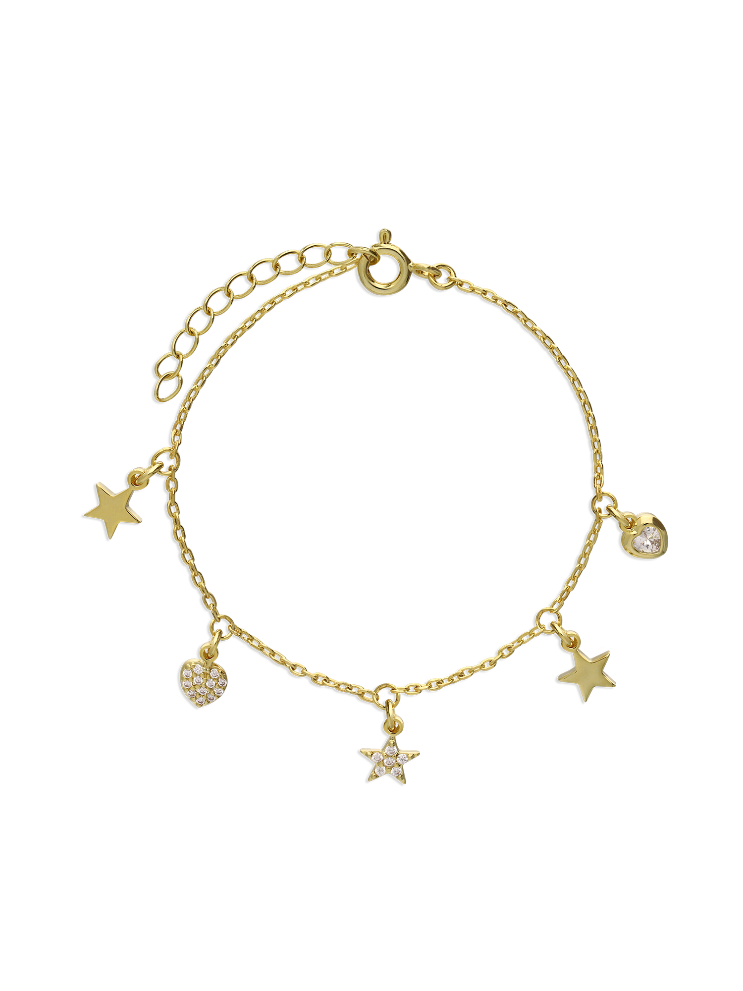 Pulseras Delicadas, Bañado en oro, Vidrio de plomo, Claro, Corazón, Estrella, Artificial, Color dorado, longitud del colgante: 0.5 cm, ancho colgante: 0.5 cm, 2.18 g