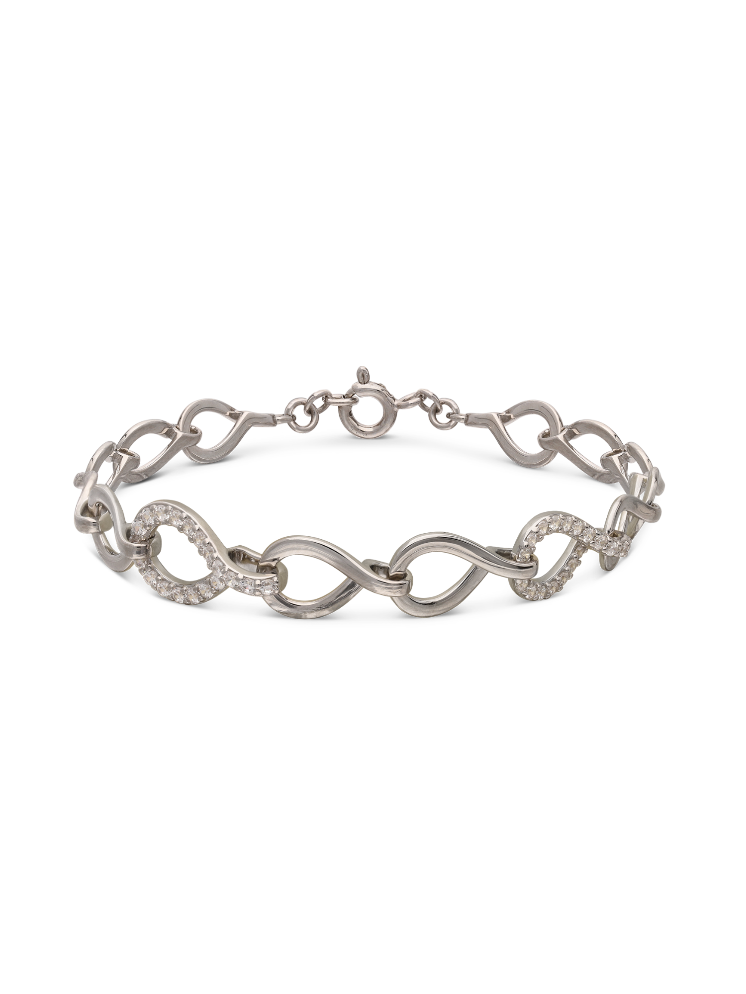 Pulseras Festivas, Plata 925 bañada en rodio, Zirconia cúbica artificial, Claro, Lágrima, Artificial, Color plateado, 7.19 g
