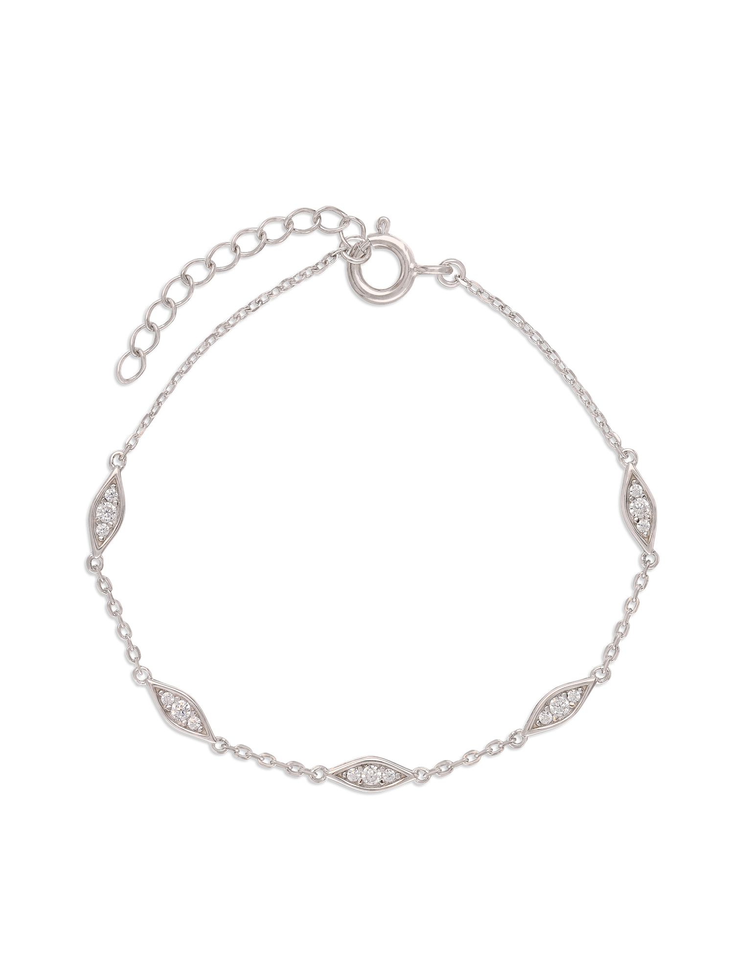 Pulseras Delicadas, Plata 925 bañada en rodio, Zirconia cúbica artificial, Claro, Ojo, Artificial, Color plateado, 2.33 g