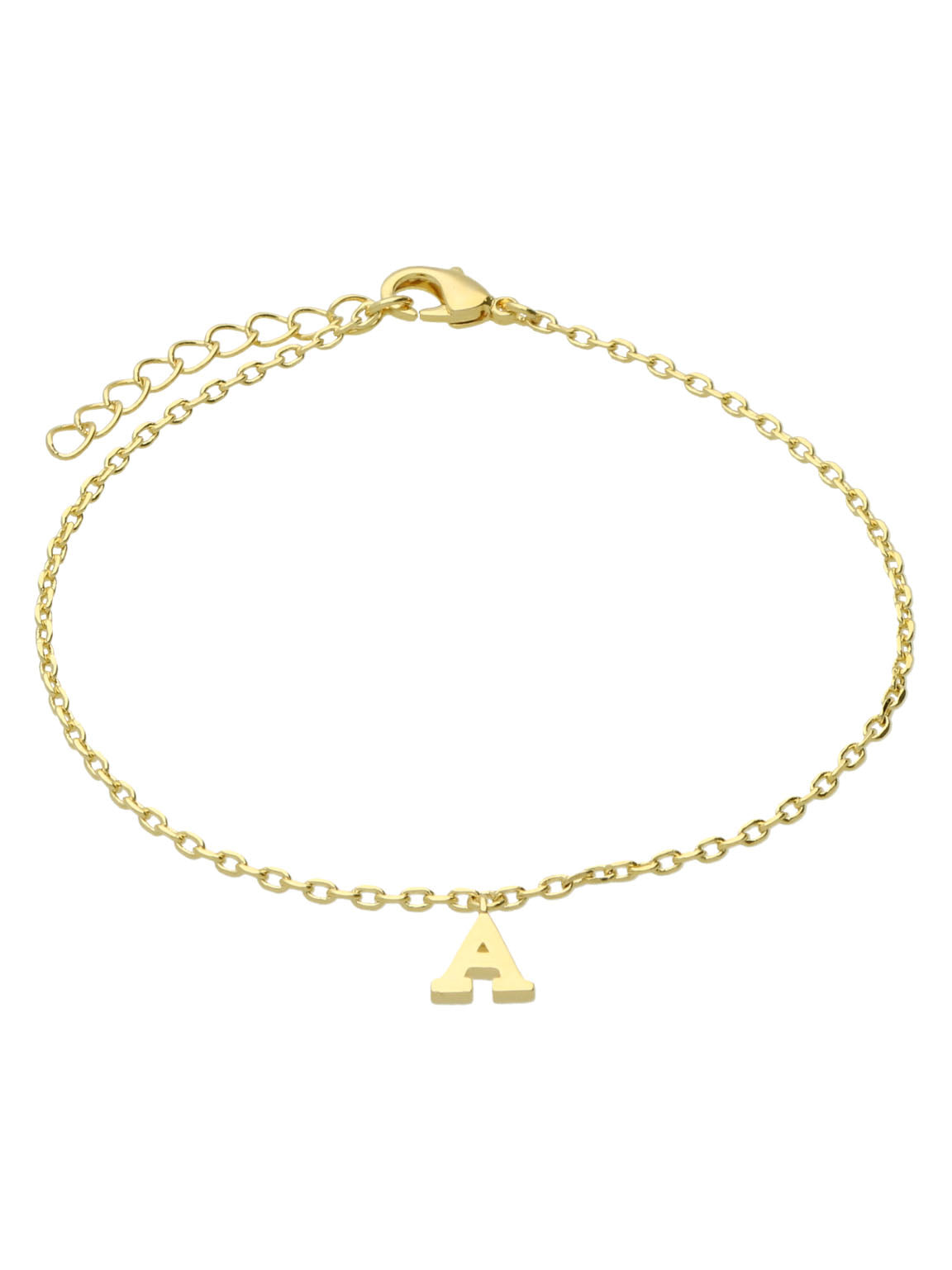 Pulseras Delicadas, Bañado en oro, Sin piedra, Sin color, Letra, Color dorado, longitud del colgante: 0.7 cm, ancho colgante: 0.6 cm, 1.38 g