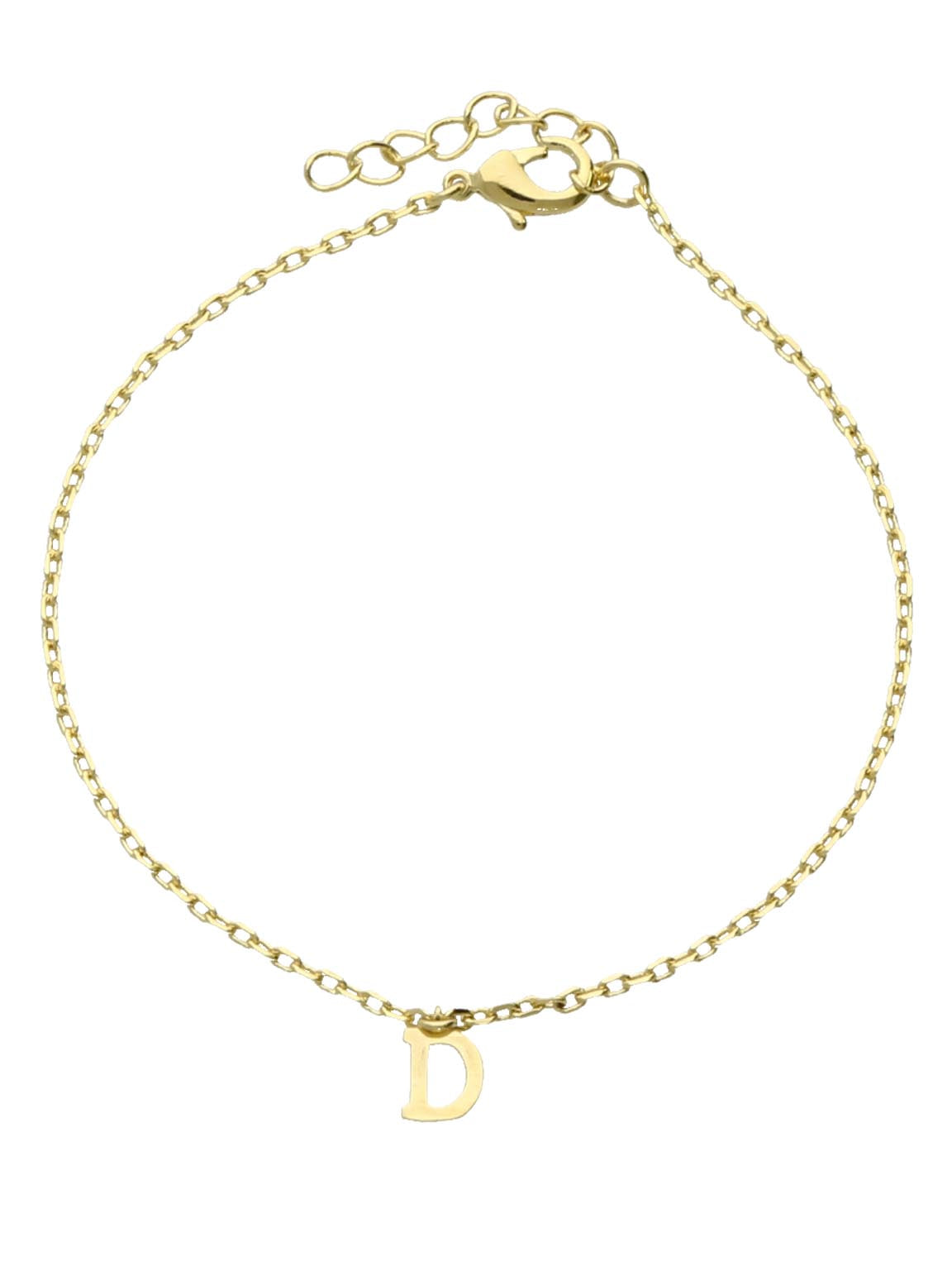 Pulseras Delicadas, Bañado en oro, Sin piedra, Sin color, Letra, Color dorado, longitud del colgante: 0.7 cm, ancho colgante: 0.5 cm, 1.36 g