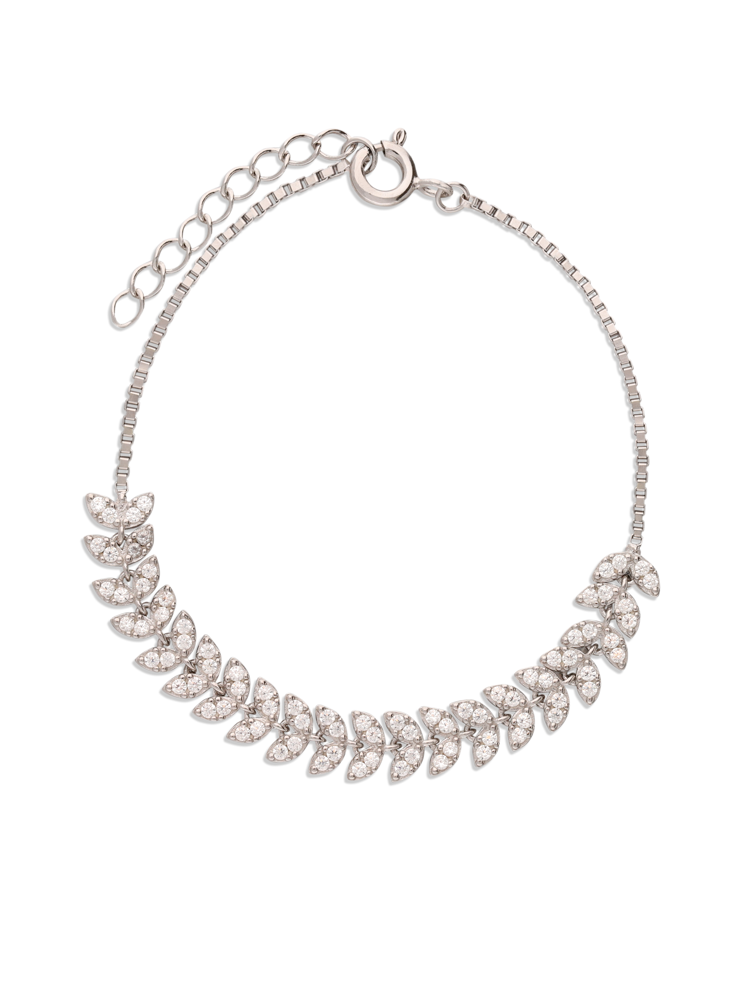 Pulseras Delicadas, Plata 925 bañada en rodio, Zirconia cúbica artificial, Claro, Hoja, Artificial, Color plateado, 5.20 g