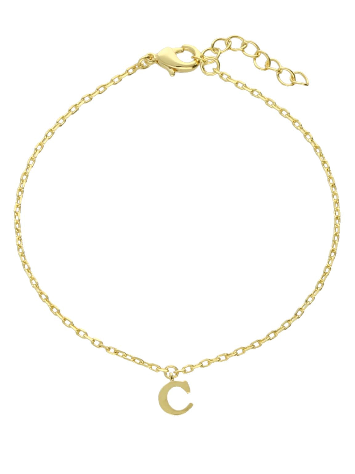 Pulseras Delicadas, Bañado en oro, Sin piedra, Sin color, Letra, Color dorado, longitud del colgante: 0.7 cm, ancho colgante: 0.6 cm, 1.28 g