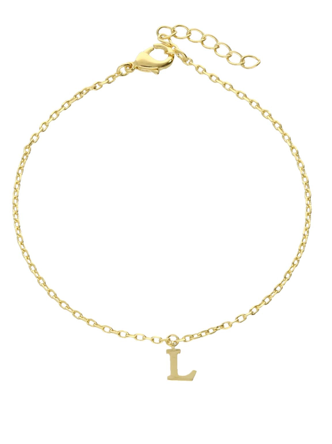 Pulseras Delicadas, Bañado en oro, Sin piedra, Sin color, Letra, Color dorado, longitud del colgante: 0.7 cm, ancho colgante: 0.5 cm, 1.38 g