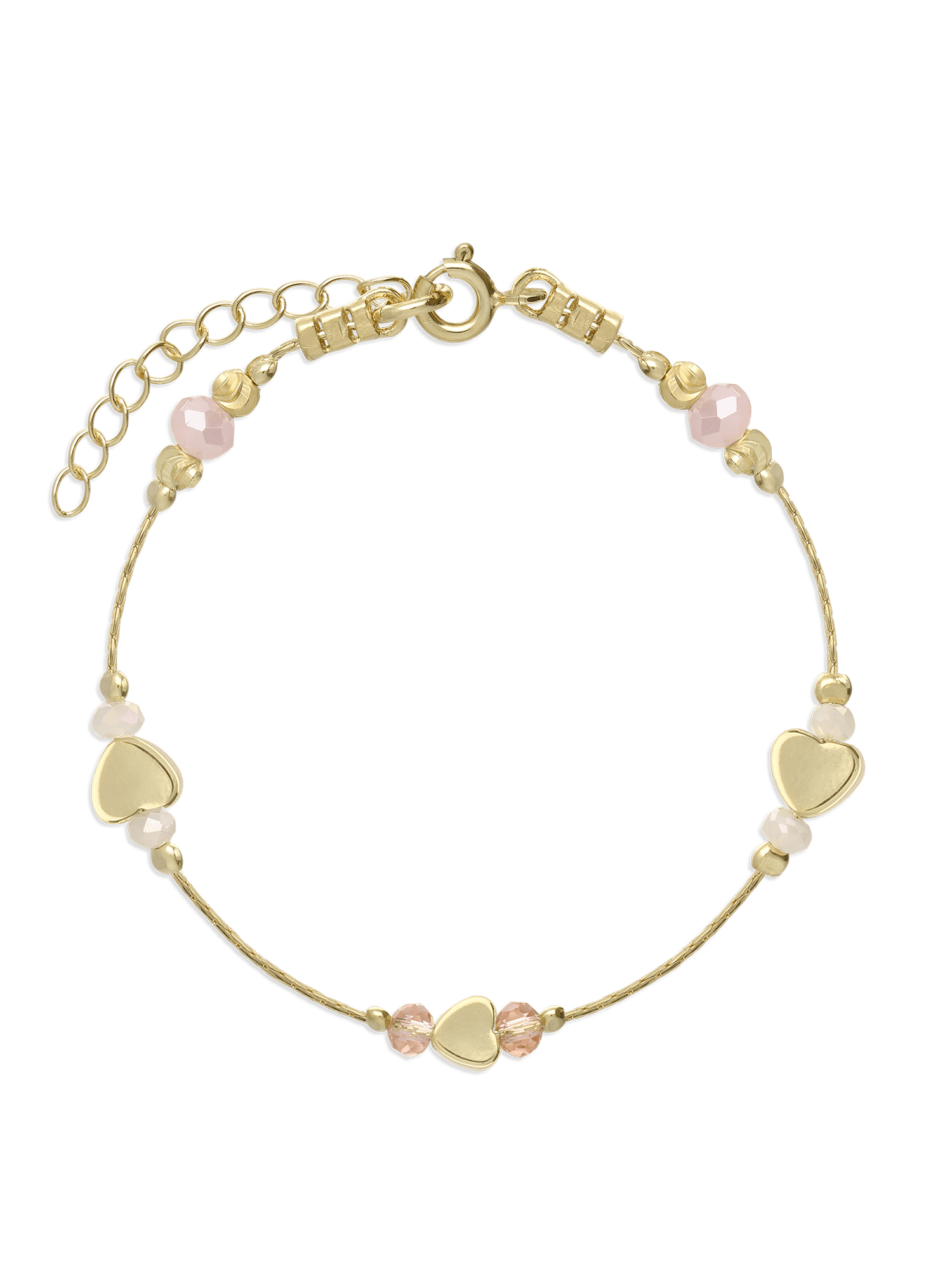 Pulseras Delicadas, Bañado en oro, Vidrio de plomo, Blanco, Rosado, Corazón, Círculo, Artificial, Color dorado, 2.96 g