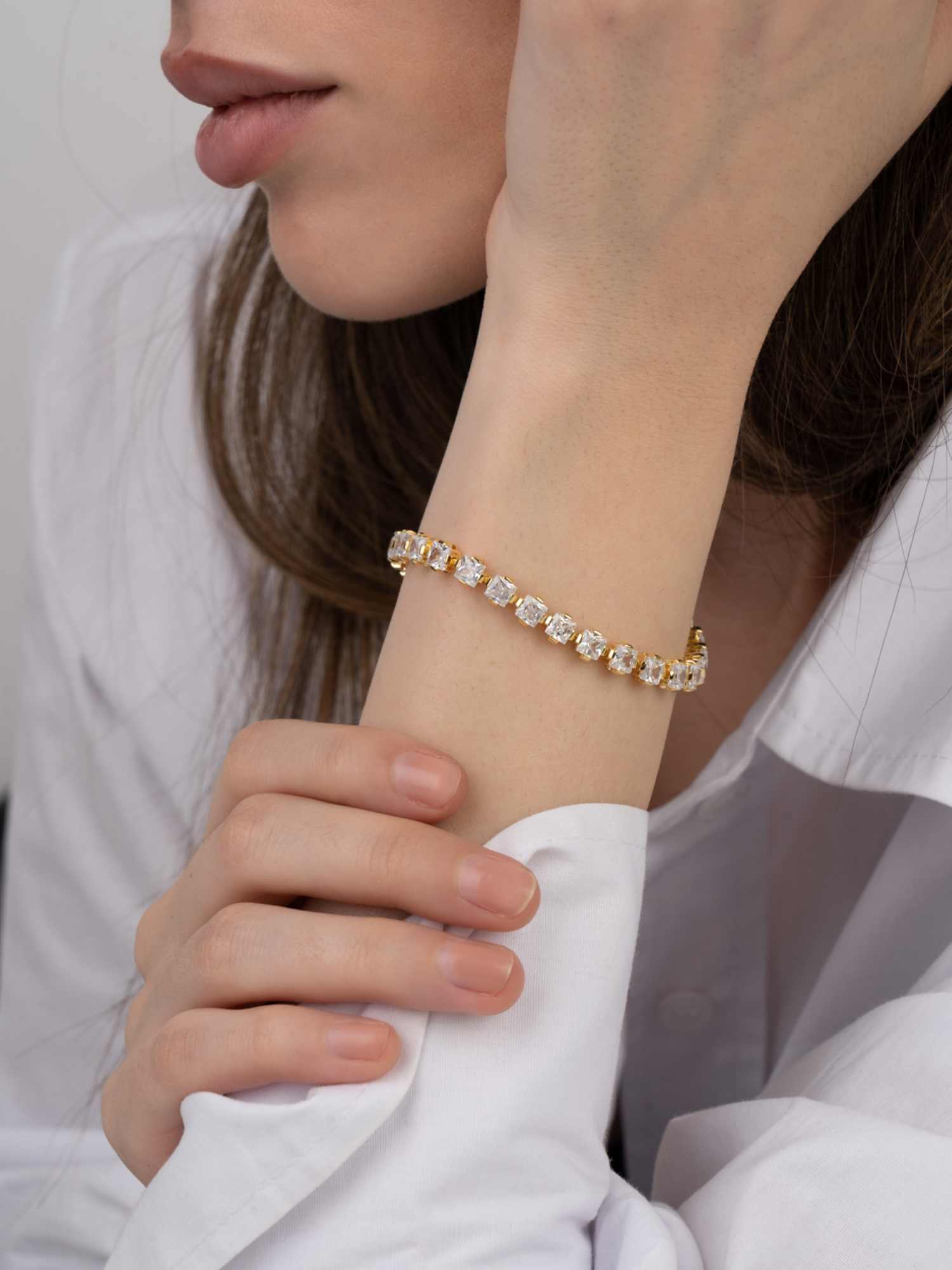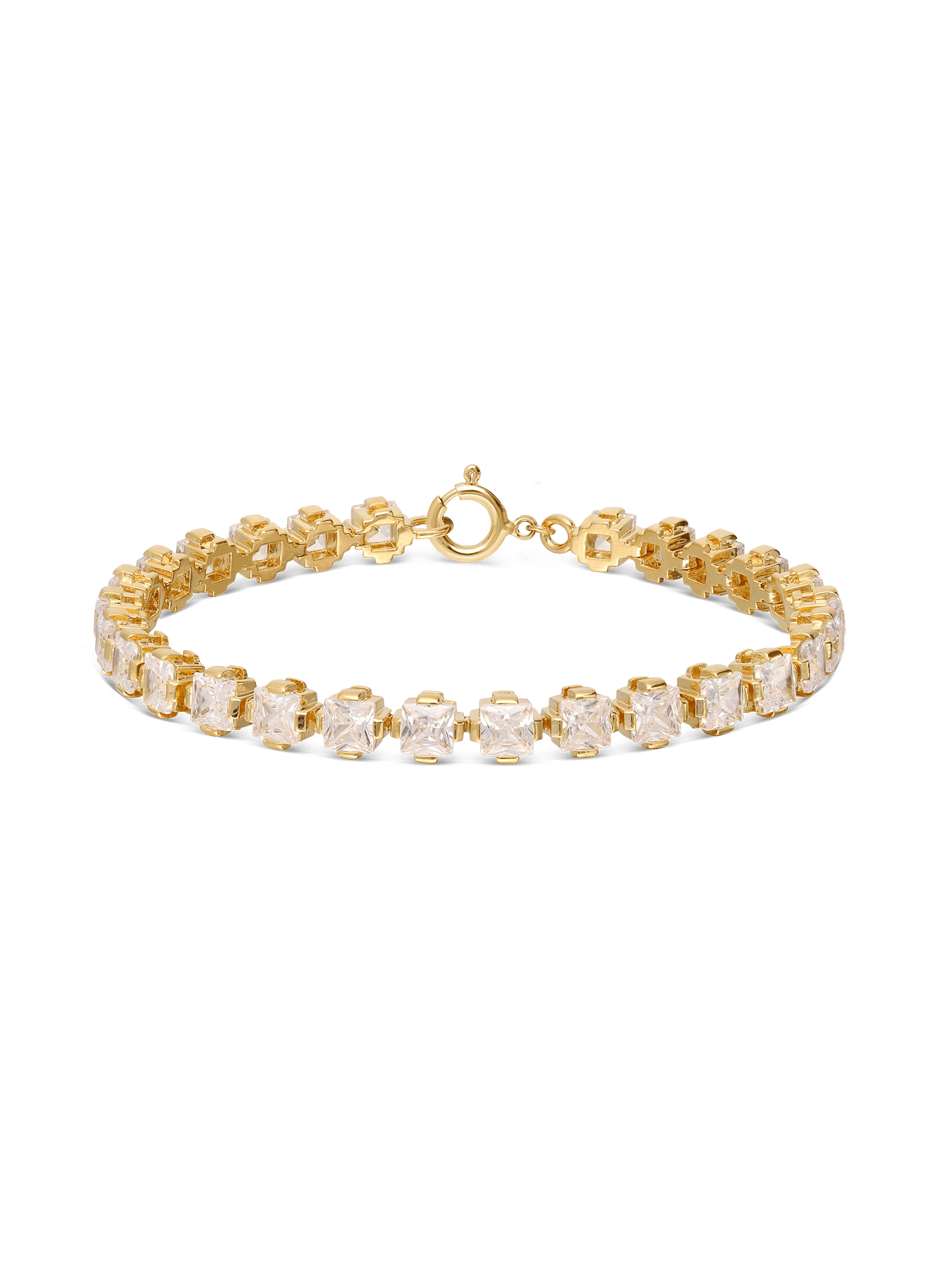 Pulsera de tenis, Bañado en oro, Zirconia cúbica artificial, Claro, Cuadrado, Artificial, Color dorado, 11.27 g