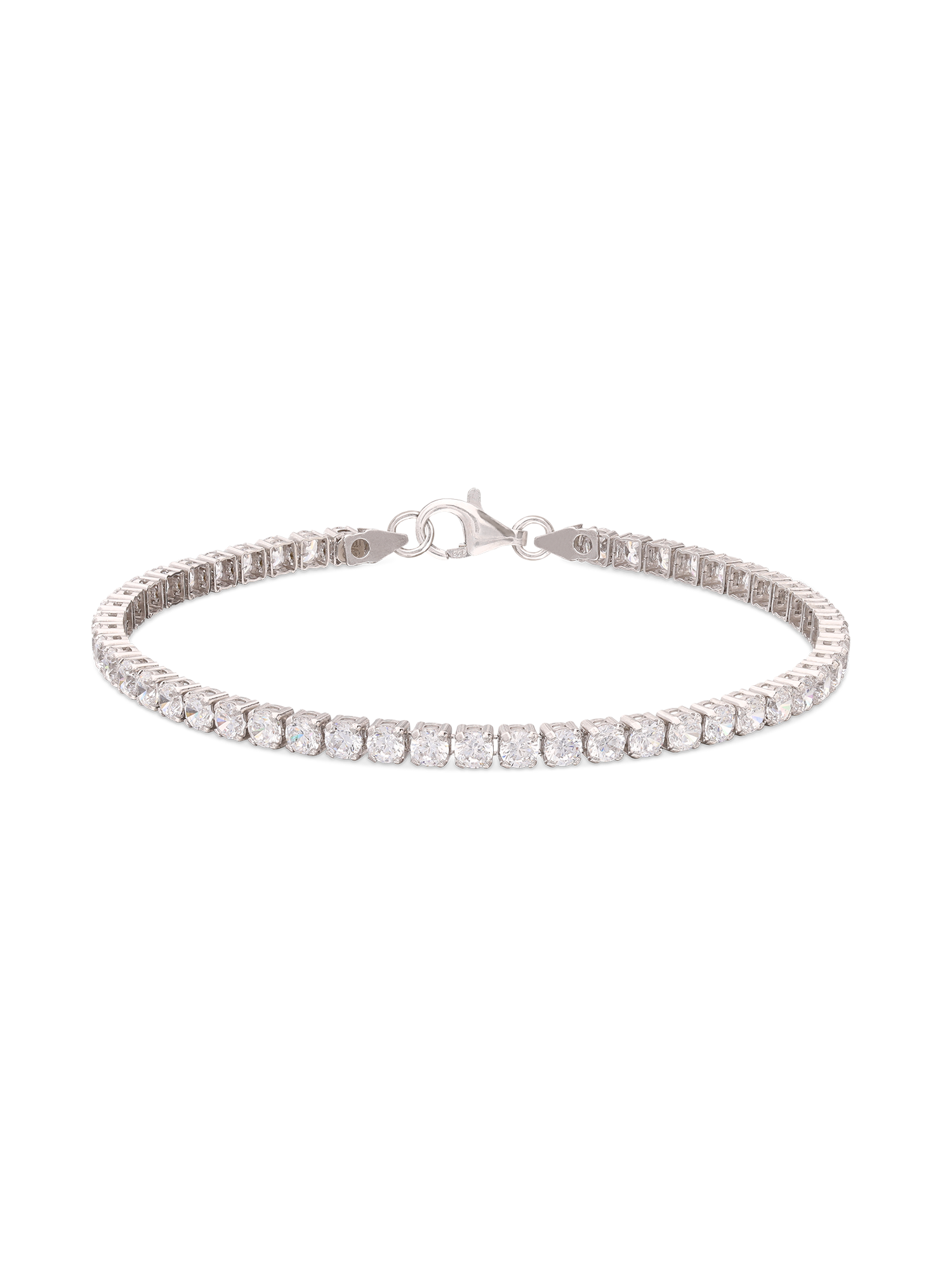 Pulsera de tenis, Plata 925 bañada en rodio, Zirconia cúbica artificial, Claro, Círculo, Artificial, Color plateado, 4.09 g