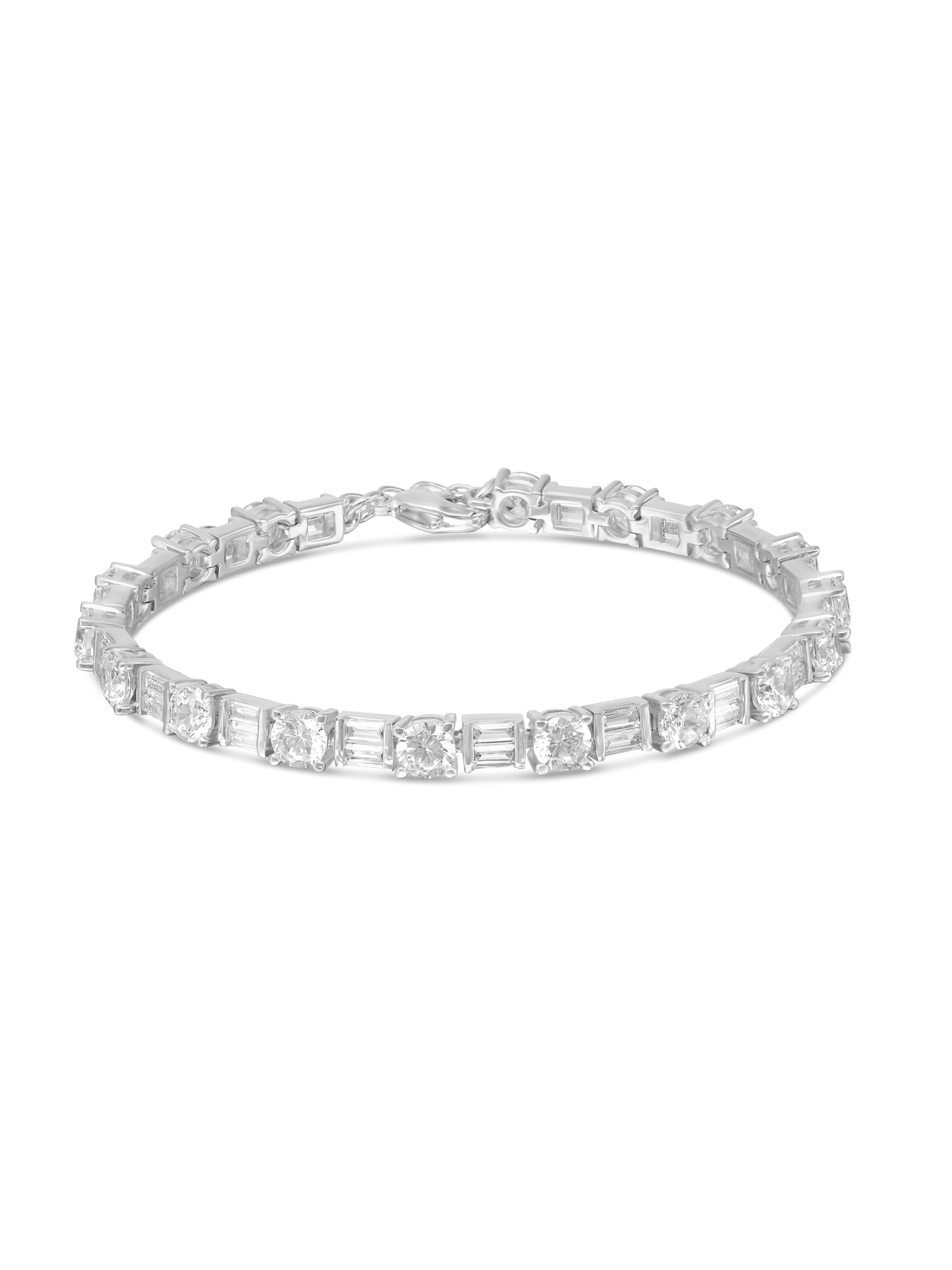 Pulsera de tenis, Plata 925 bañada en rodio, Zirconia cúbica artificial, Claro, Cuadrado, Círculo, Artificial, Color plateado, 12.68 g