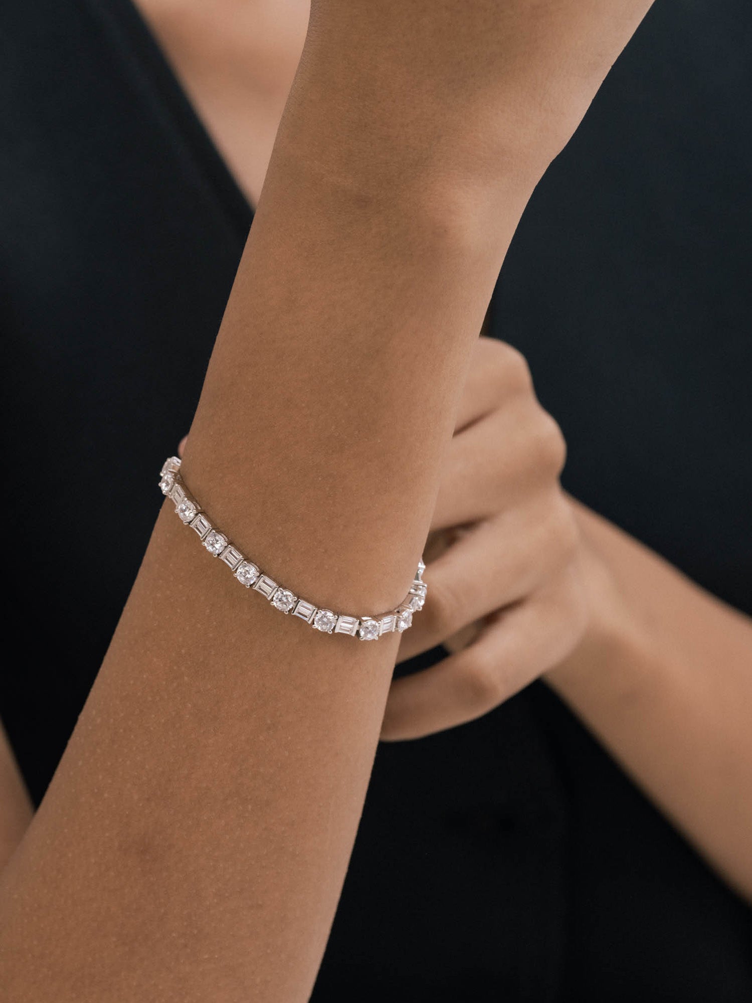 Pulsera de tenis, Plata 925 bañada en rodio, Zirconia cúbica artificial
