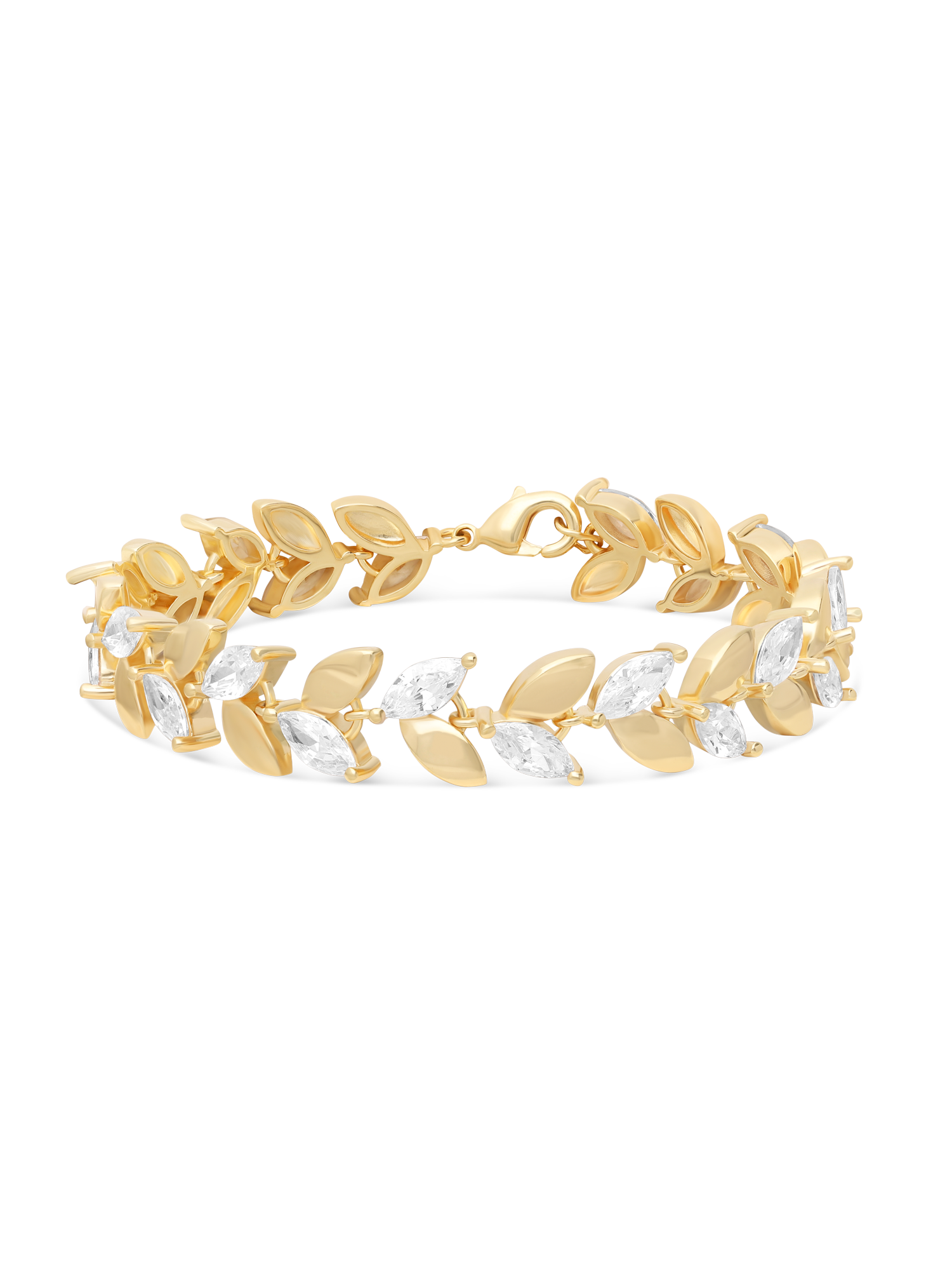 Pulseras Festivas, Bañado en oro, Zirconia cúbica artificial, Claro, Hoja, Artificial, Color dorado, 18.02 g