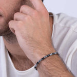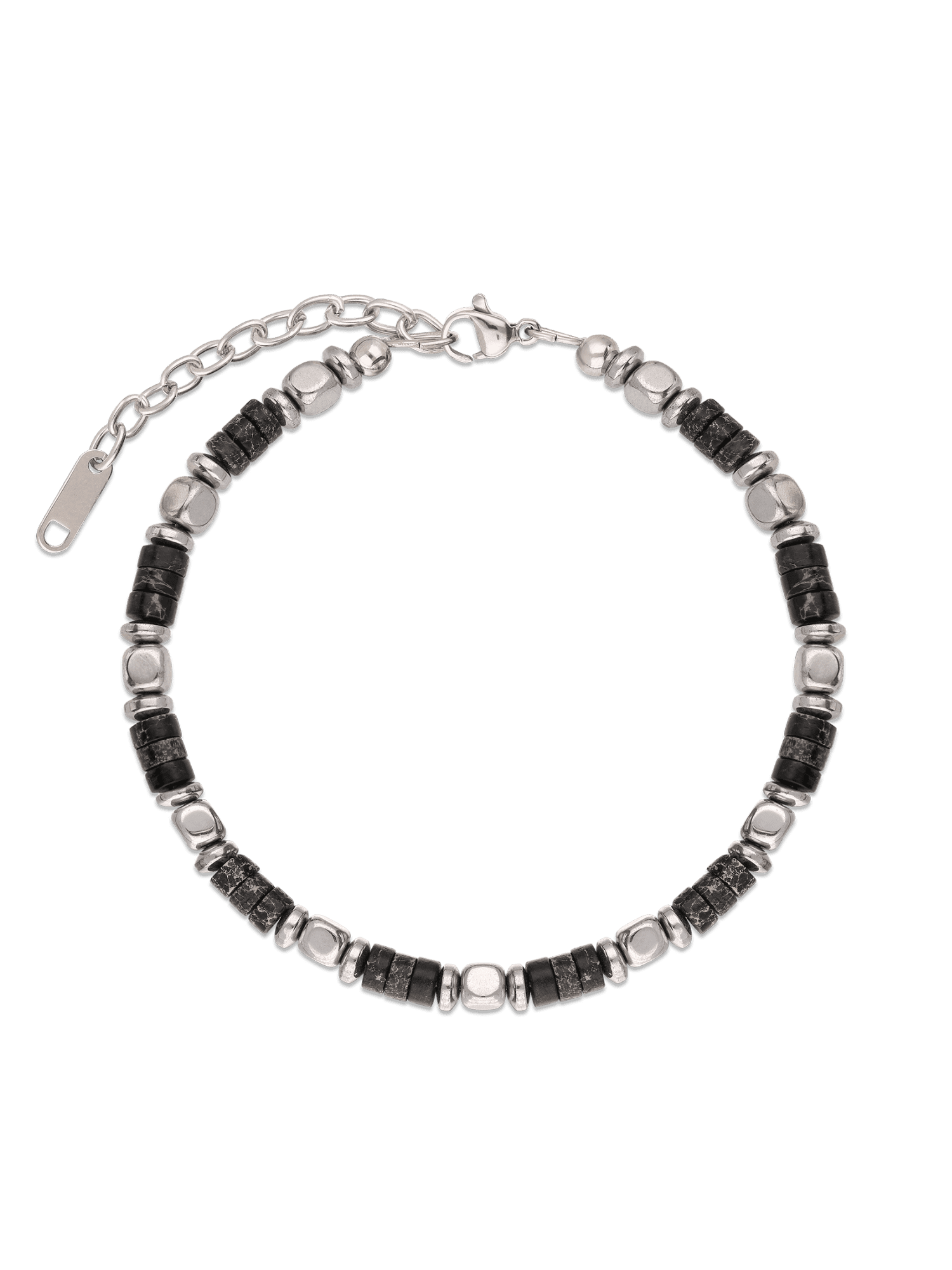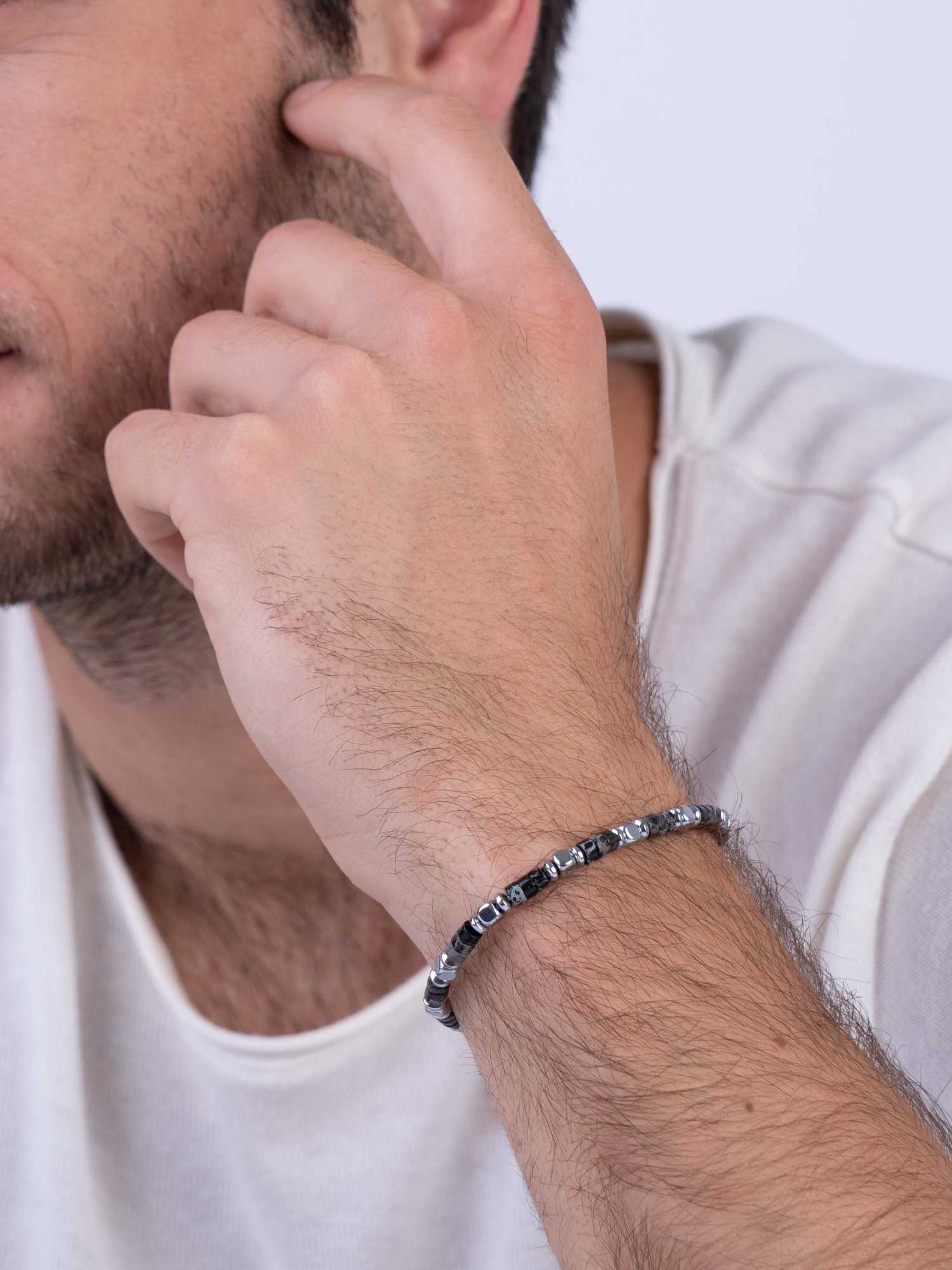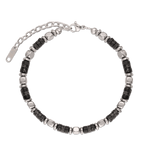 Pulsera de hombre, Acero inoxidable, Howlita artificial, Negro, Gris, Cuadrado, Círculo, Artificial, Color plateado, 8.75 g