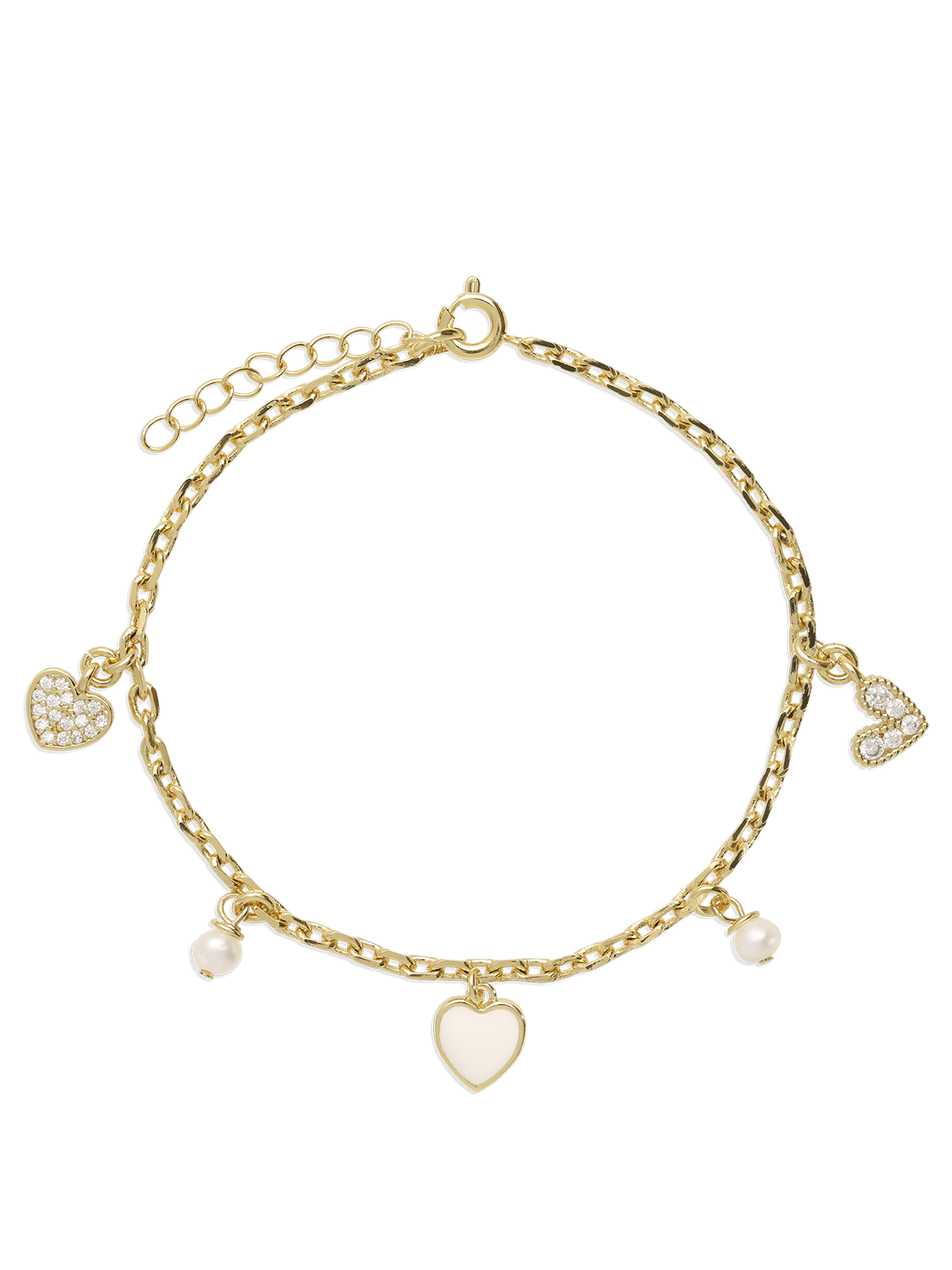 Pulseras Delicadas, Bañado en oro, Zirconia cúbica artificial, Perla cultivada, Esmalte