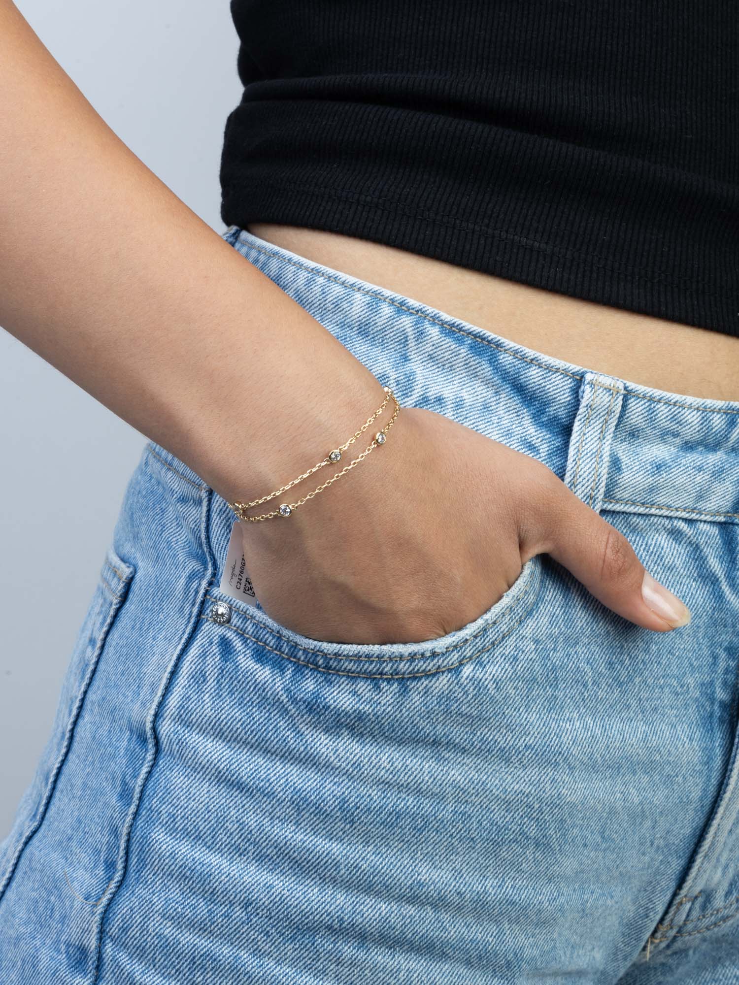 Pulsera a capas, Bañado en oro, Zirconia cúbica artificial