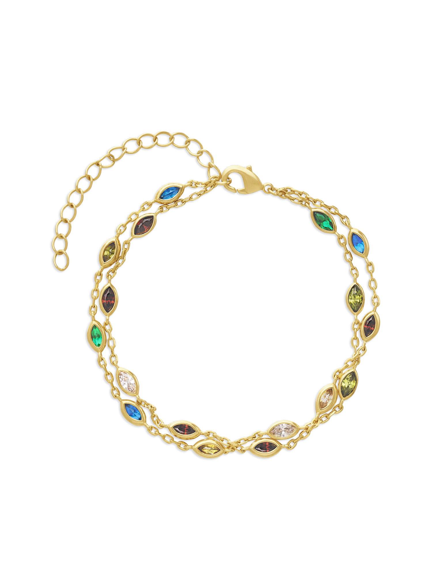 Pulseras Delicadas, Bañado en oro, Zirconia cúbica artificial, Multicolor, Círculo, Artificial, Color dorado, 4.50 g