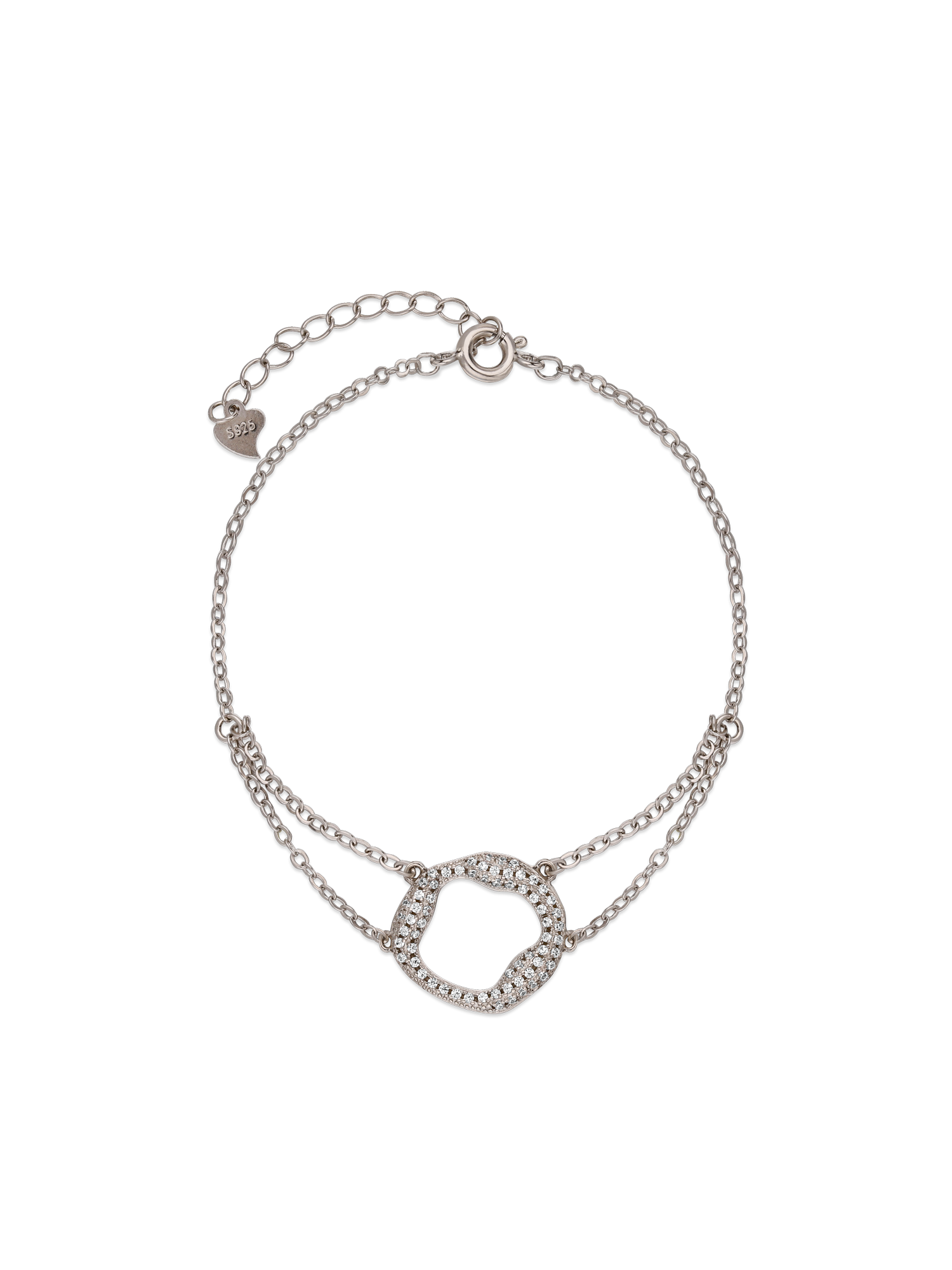 Pulseras Delicadas, Plata 925 bañada en rodio, Zirconia cúbica artificial, Claro, Círculo, Artificial, Color plateado, 2.50 g