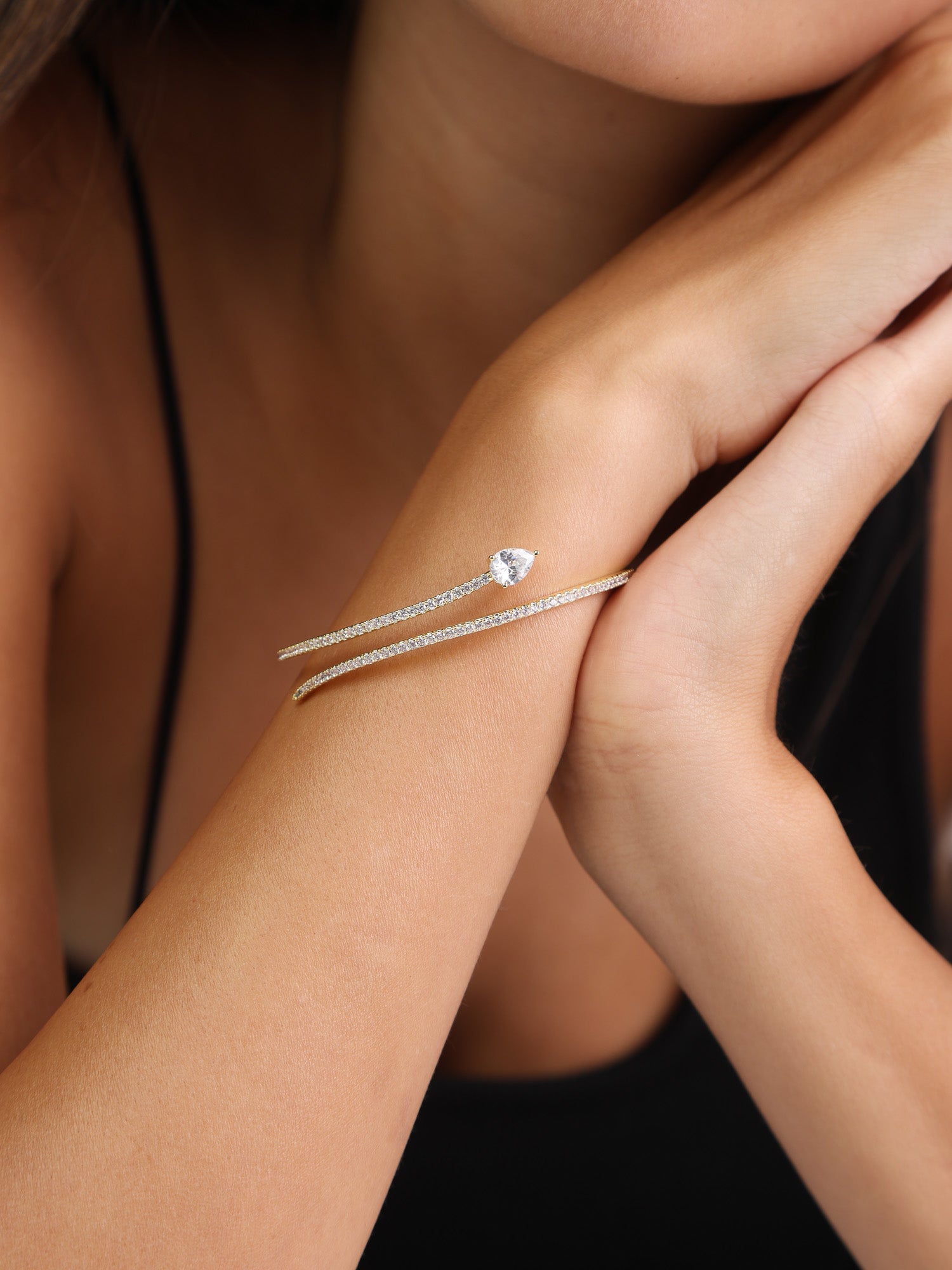 Esposas y brazaletes, Bañado en oro, Zirconia cúbica artificial, Claro, Lágrima, Artificial, Color dorado, 10.94 g