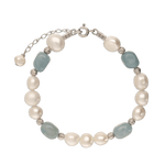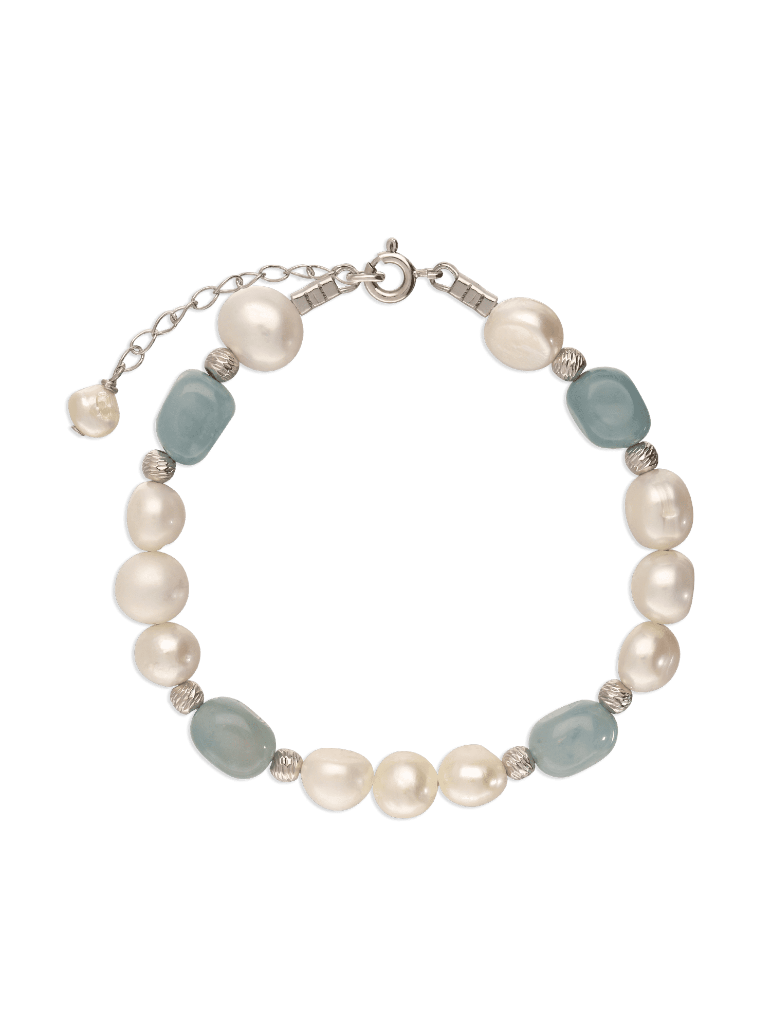 Pulsera de perlas, Plata 925 bañada en rodio, Perla cultivada, Cuarzo artificial, Celeste, Blanco, Círculo, Artificial, Color plateado, 6.80 g