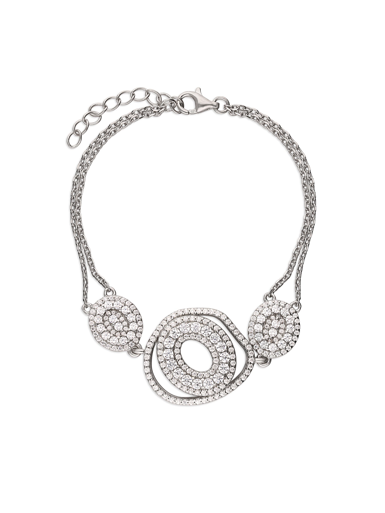 Pulseras Delicadas, Plata 925 bañada en rodio, Zirconia cúbica artificial, Claro, Círculo, Artificial, Color plateado, 7.88 g